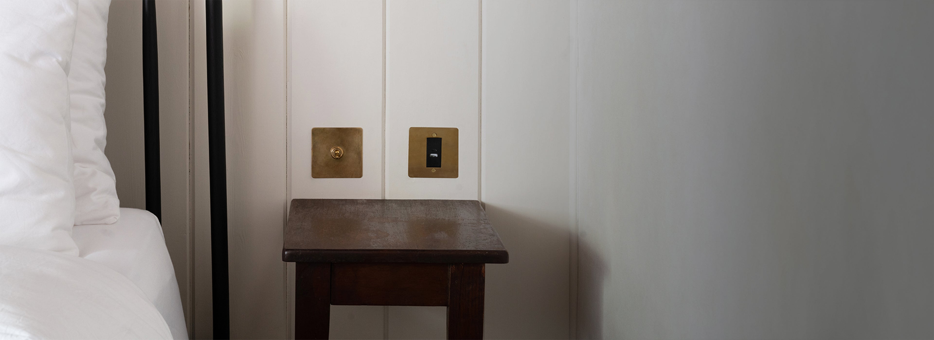 These switches and sockets are our subtlest. To get a flush finish, they’re fitted with our own back boxes that are deep enough to house all the electrics.