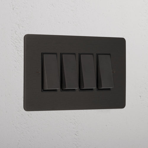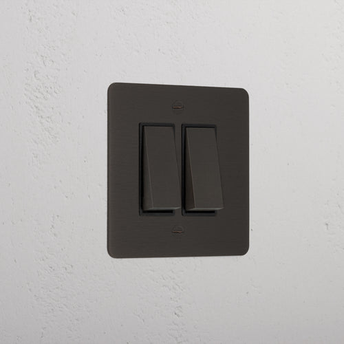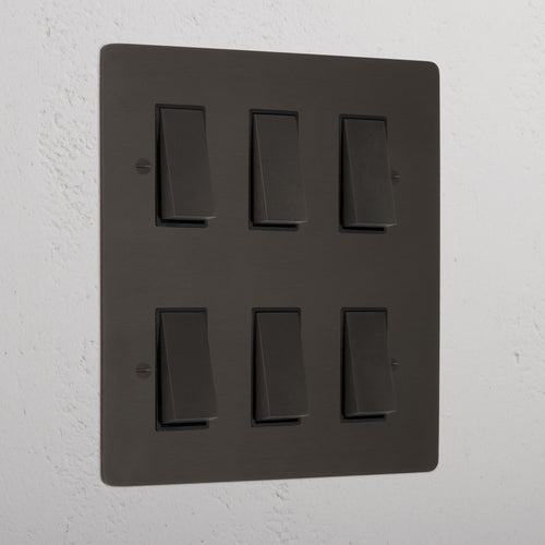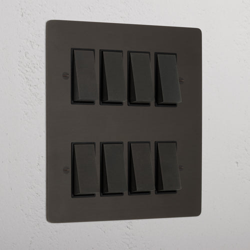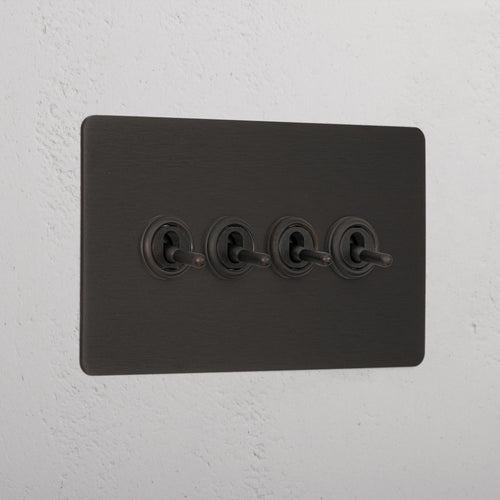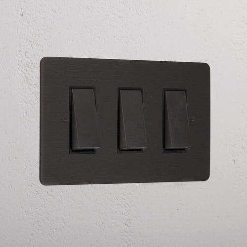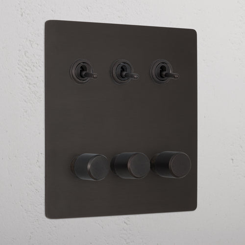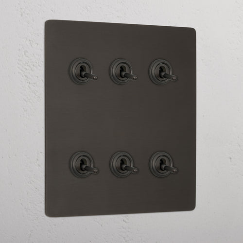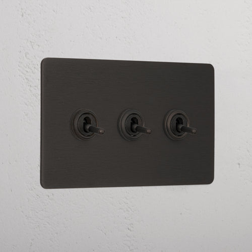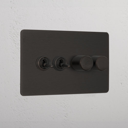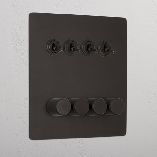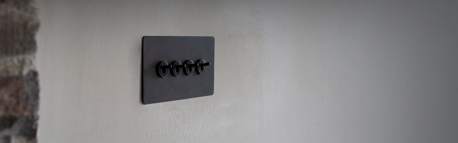 The solid brass toggles, rockers, dimmers and plates here come in bronze, our darkest finish that’s warmer than plain black.