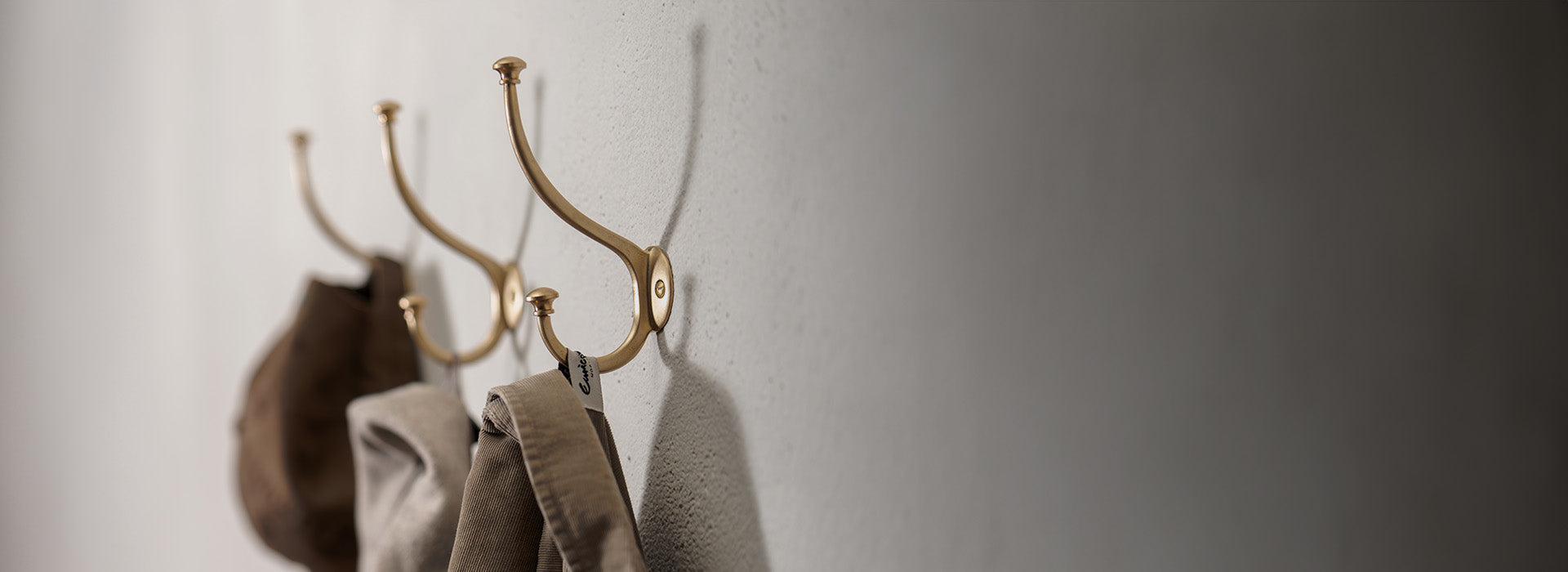 Use our solid brass hooks on their own or double them up for more storage space in bathrooms, hallways, utilities and cloakrooms.