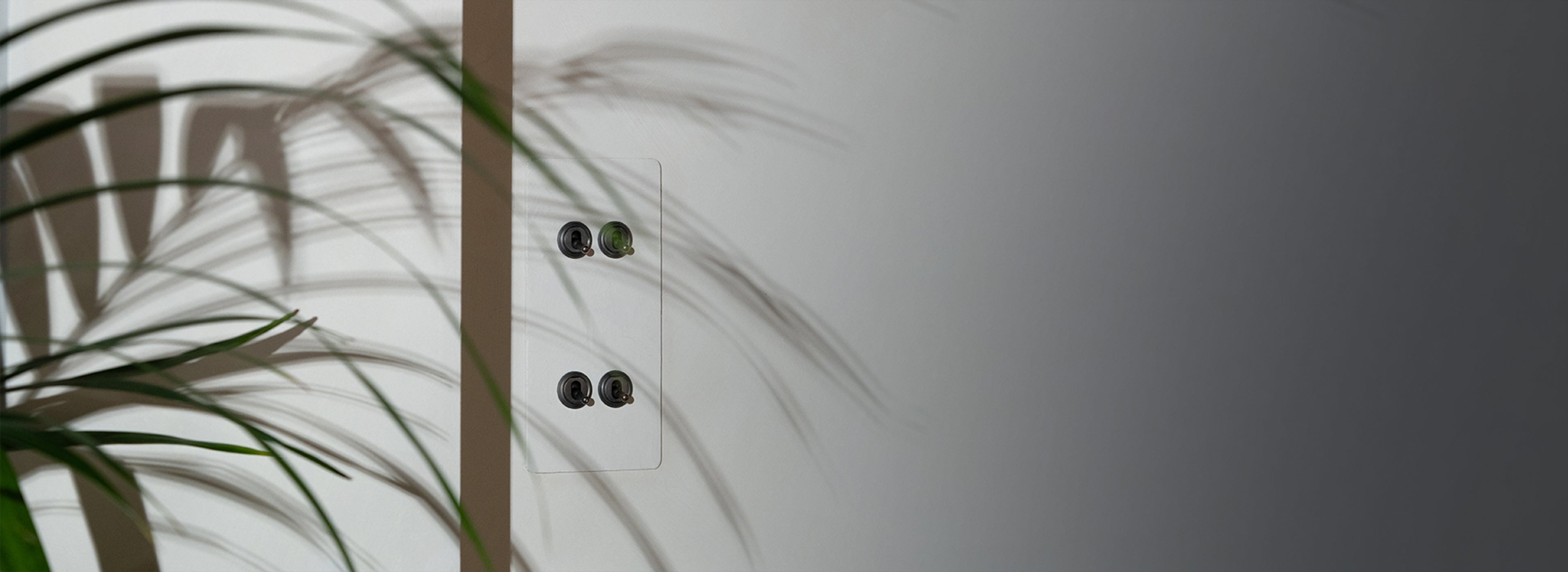These switches and sockets are our subtlest. To get a flush finish, they’re fitted with our own back boxes that are deep enough to house all the electrics.