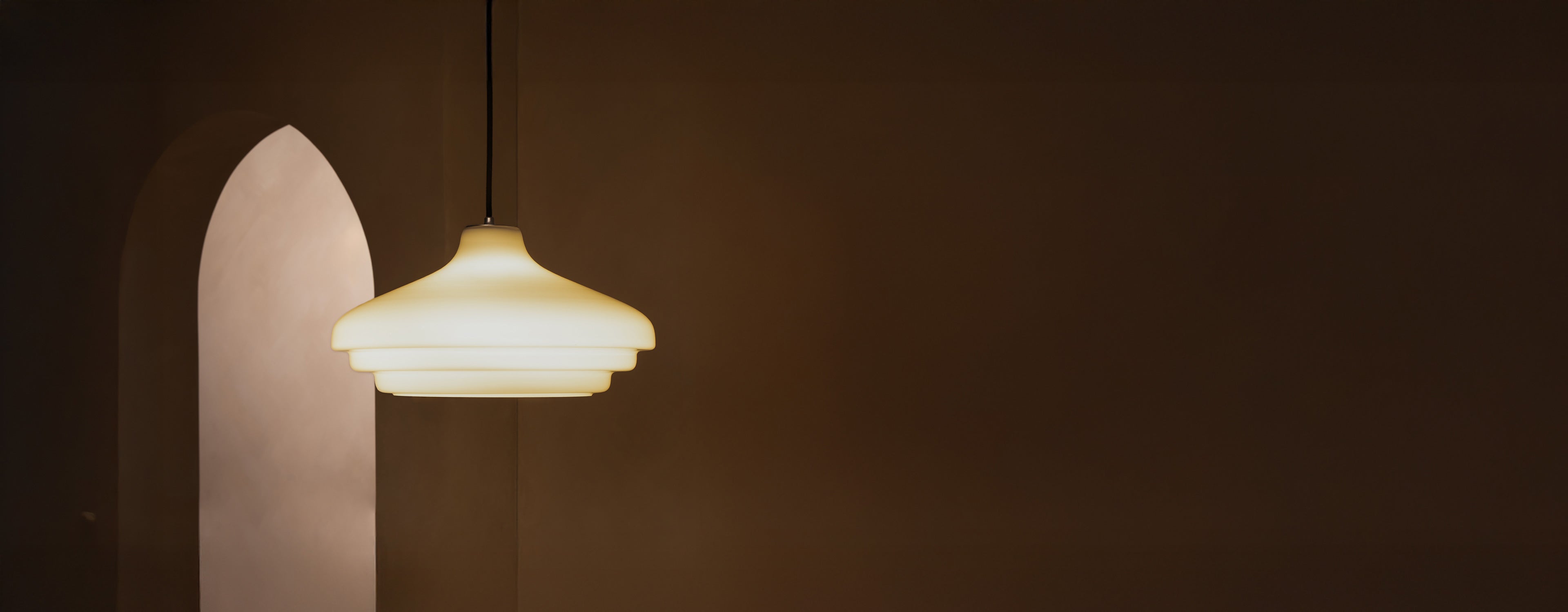 Explore our pendant collection, including elegantly curved and conical shades in solid brass, fluted glass, opal glass and fine porcelain.