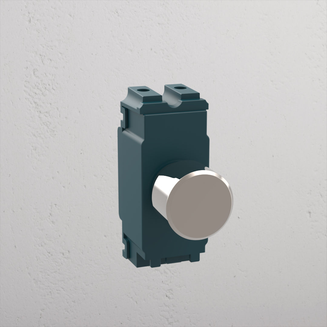 This polished nickel rotary dimmer switch works with our polished nickel and paintable switch plates. It has a collar underneath the rotating knob that hides all the working parts.