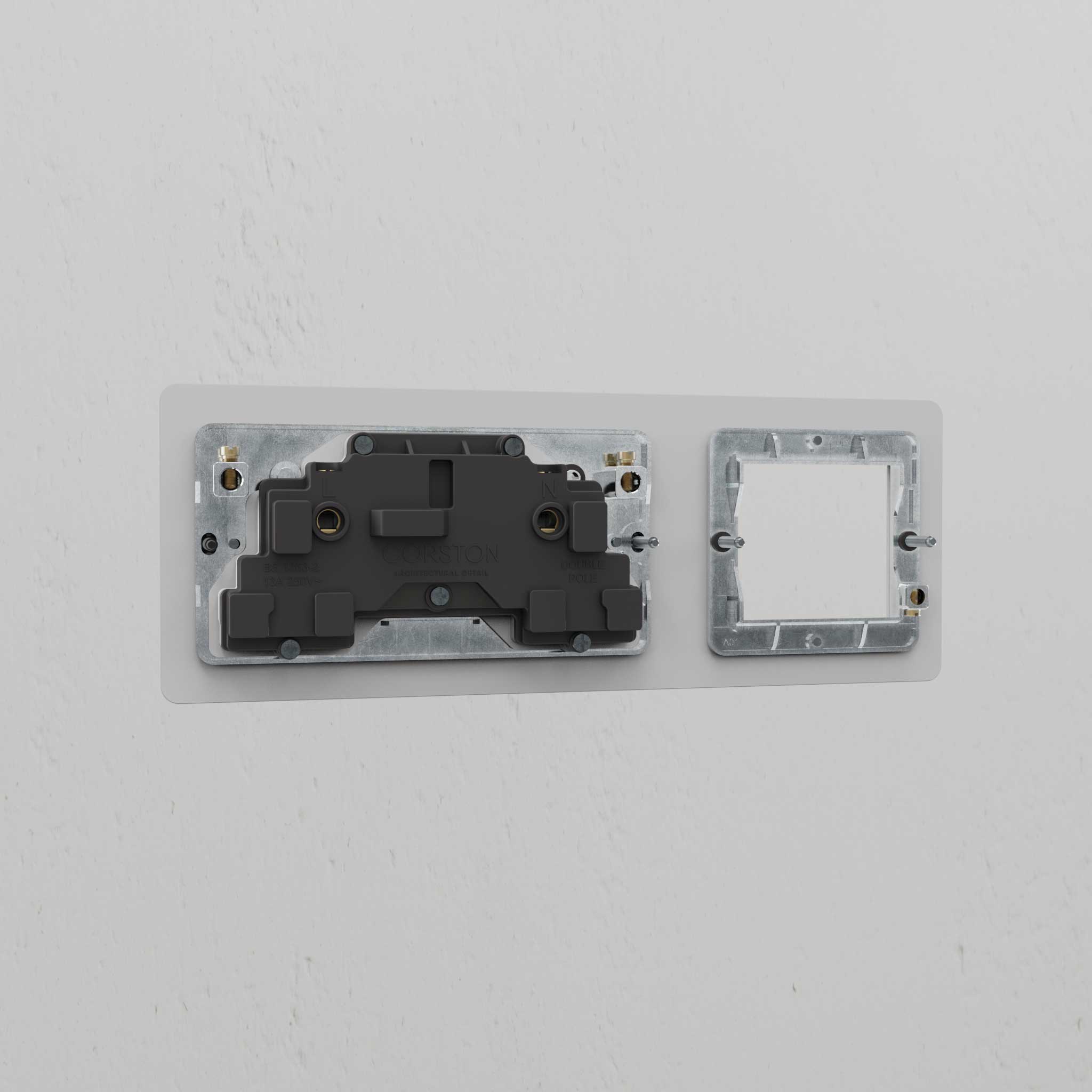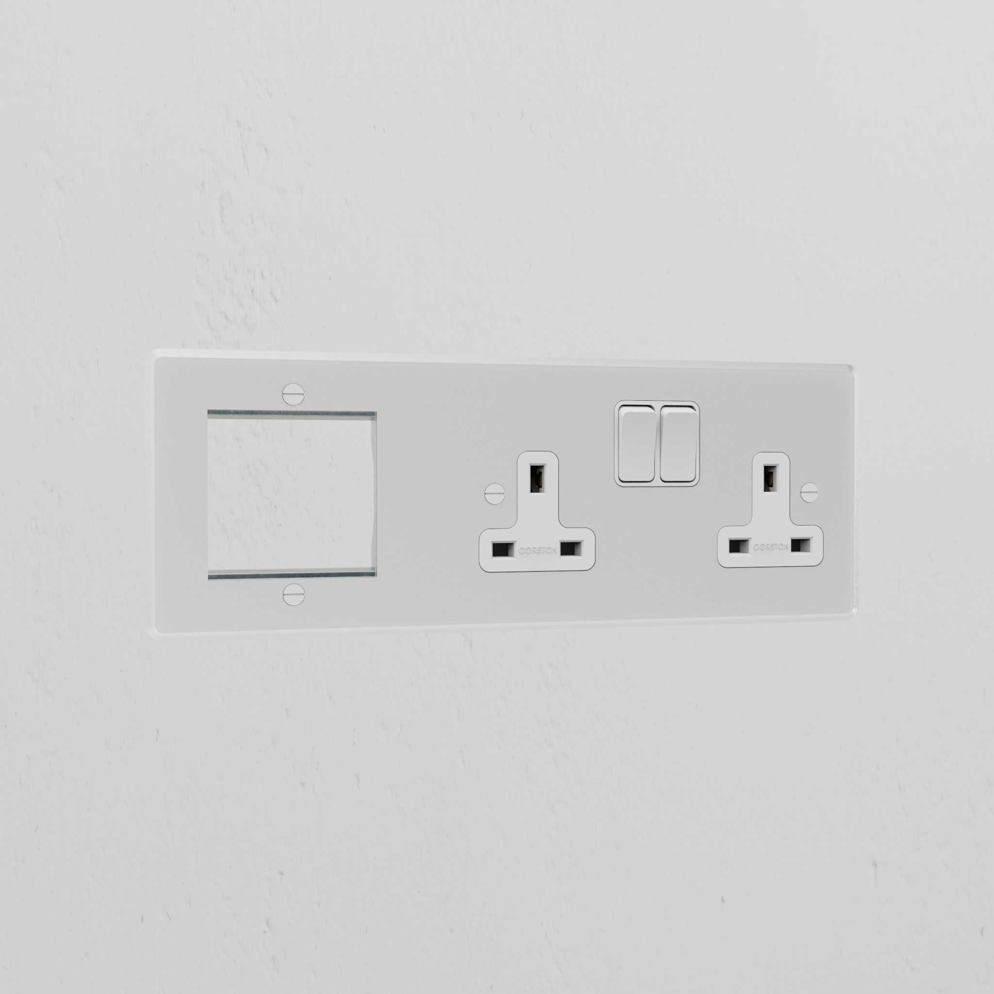 This clear 50mm module plate works with any one of our 50mm or two 25mm modules (just make sure you choose the ones made with white plastic). It comes with two built-in UK sockets too.
