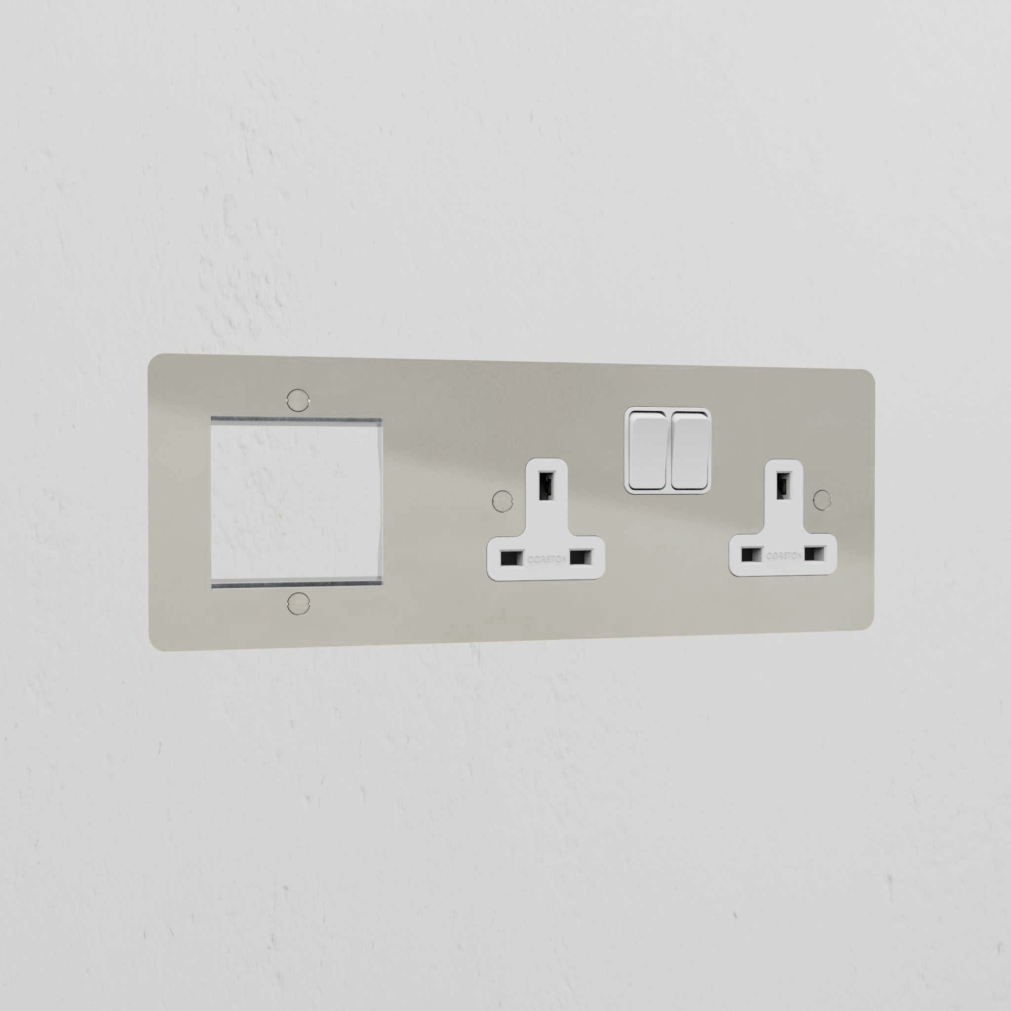 This 50mm module plate in bronze works with any one of our 50mm or two 25mm modules (just make sure you choose the ones made with black plastic). It comes with two built-in UK sockets too.
