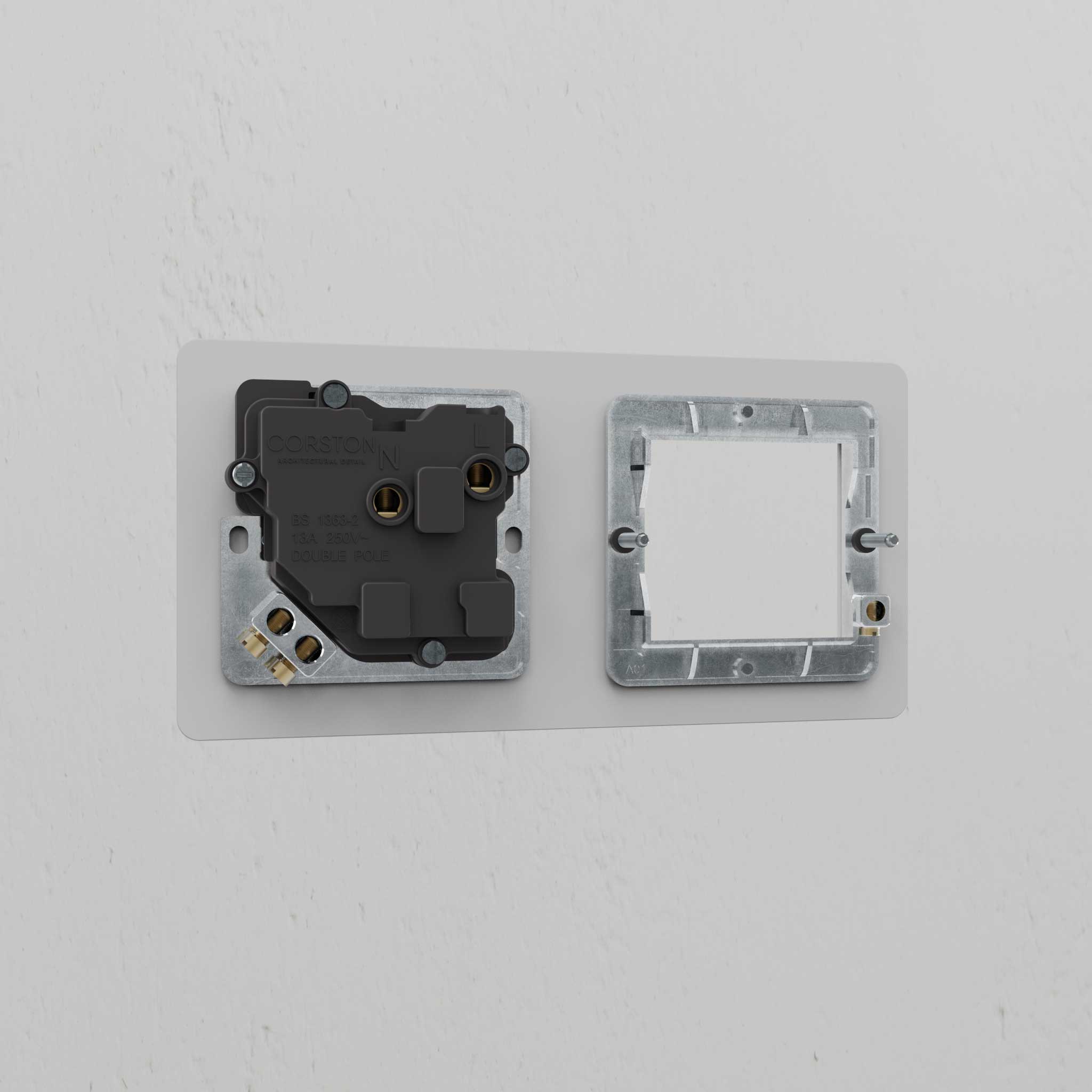 This clear 50mm module plate works with any one of our 50mm or two 25mm modules (just make sure you choose the ones made with black plastic). It comes with a built-in UK socket too.