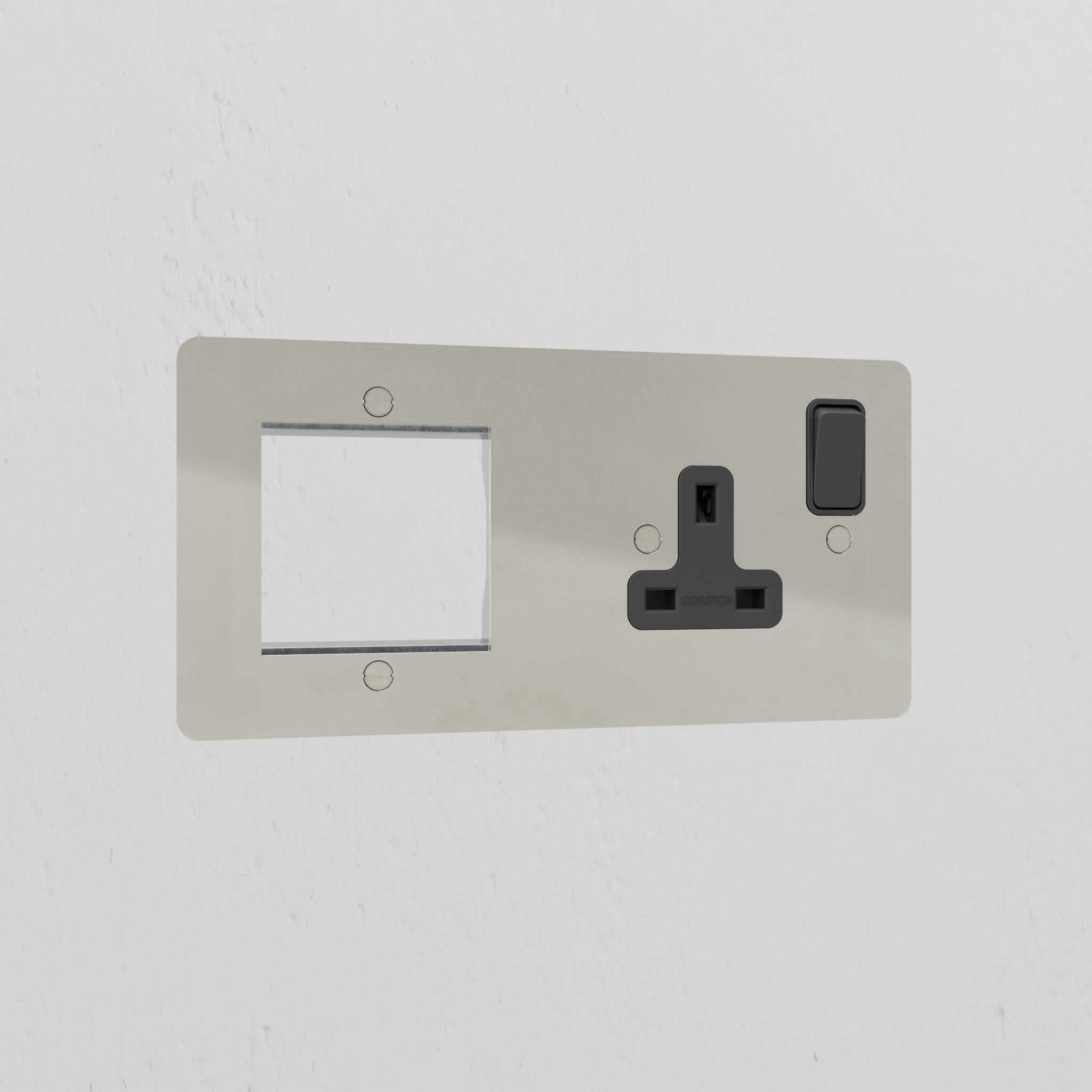 This 50mm module plate in bronze works with any one of our 50mm or two 25mm modules (just make sure you choose the ones made with black plastic). It comes with a built-in UK socket too.