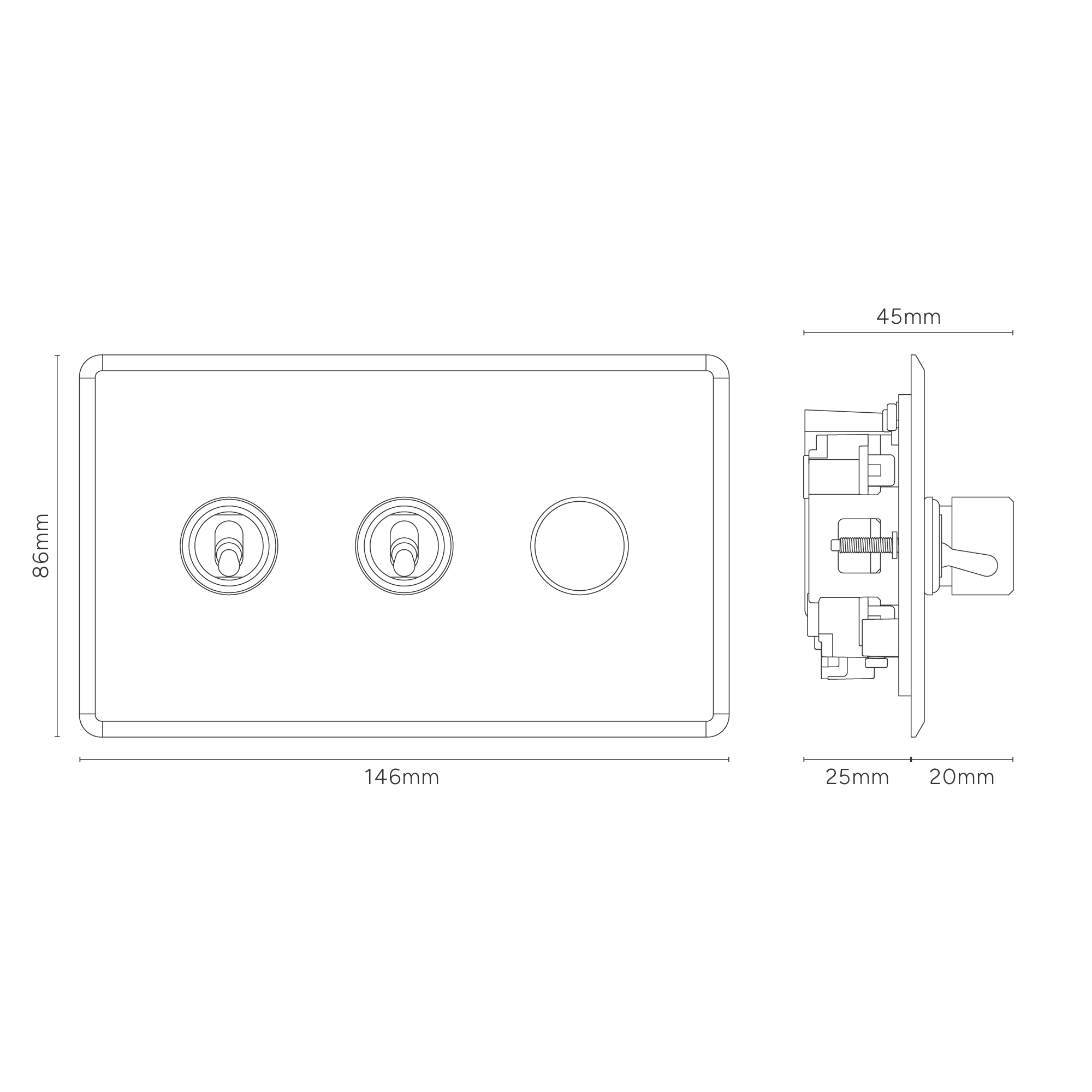 Our 1 gang architrave retractive toggle switch is a modern take on the classic dolly design. We’ve crafted it to be as sleek and timeless as possible in any interior setting.