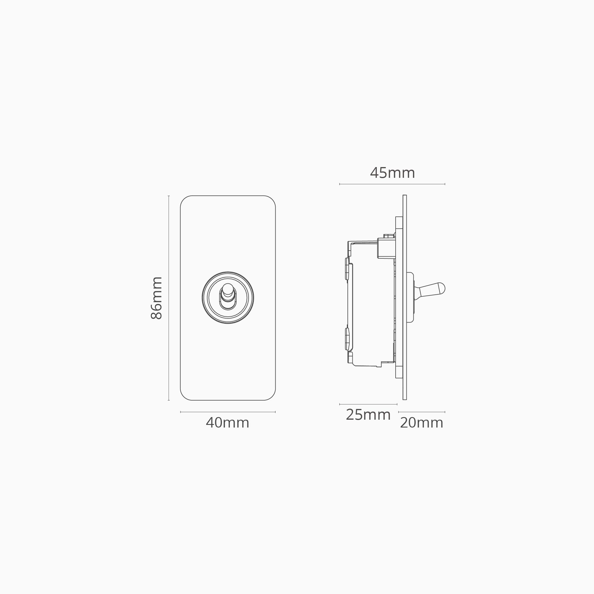 Our 1 gang architrave two-way toggle switch is a modern take on the classic dolly design. We’ve crafted it to be as sleek and timeless as possible in any interior setting.