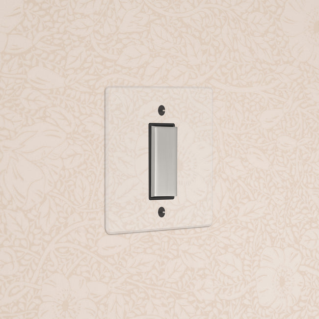 Our 1 gang centre retractive rocker switch is crafted to be as sleek and timeless as possible in any interior setting.