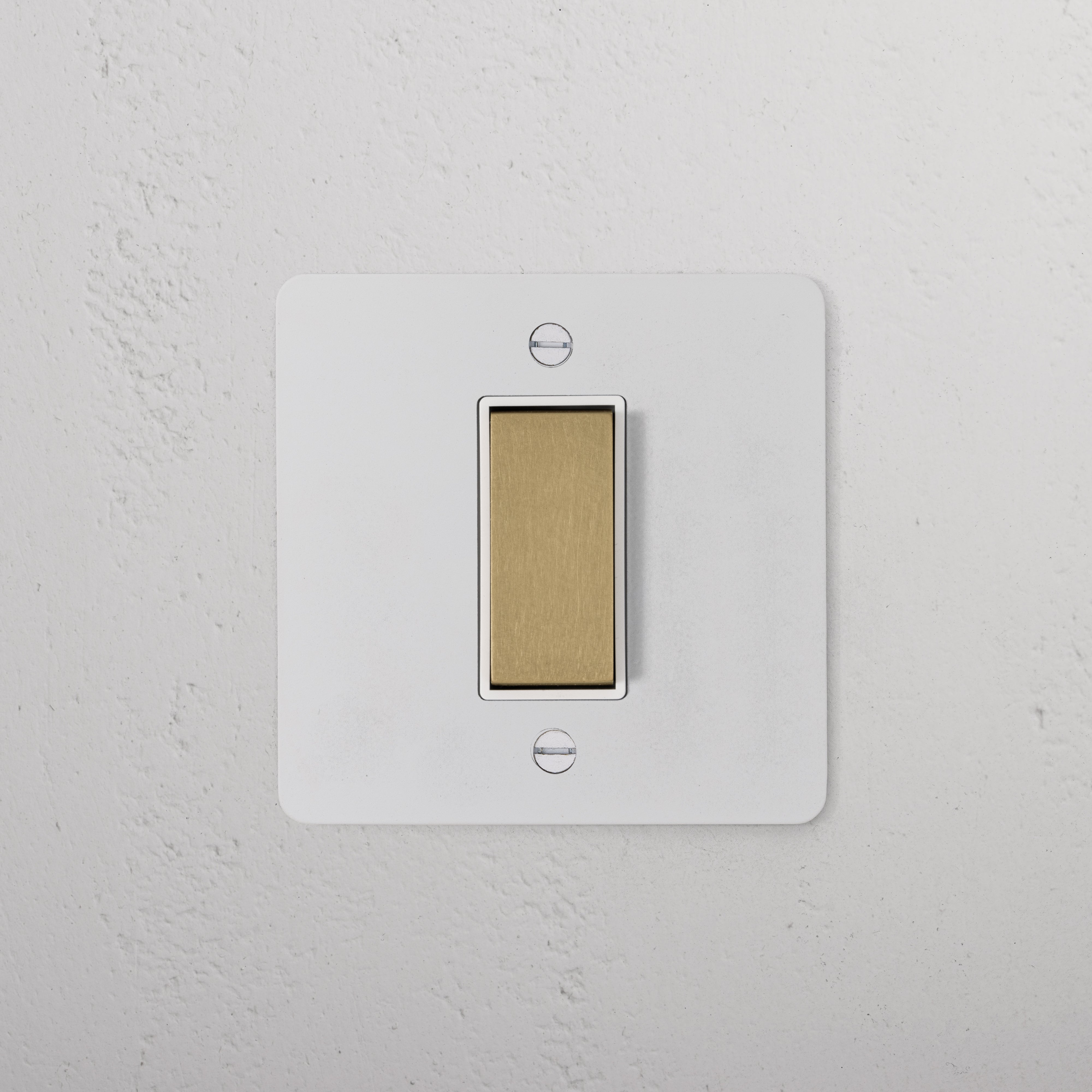 Our 1 gang centre retractive rocker switch is crafted to be as sleek and timeless as possible in any interior setting.