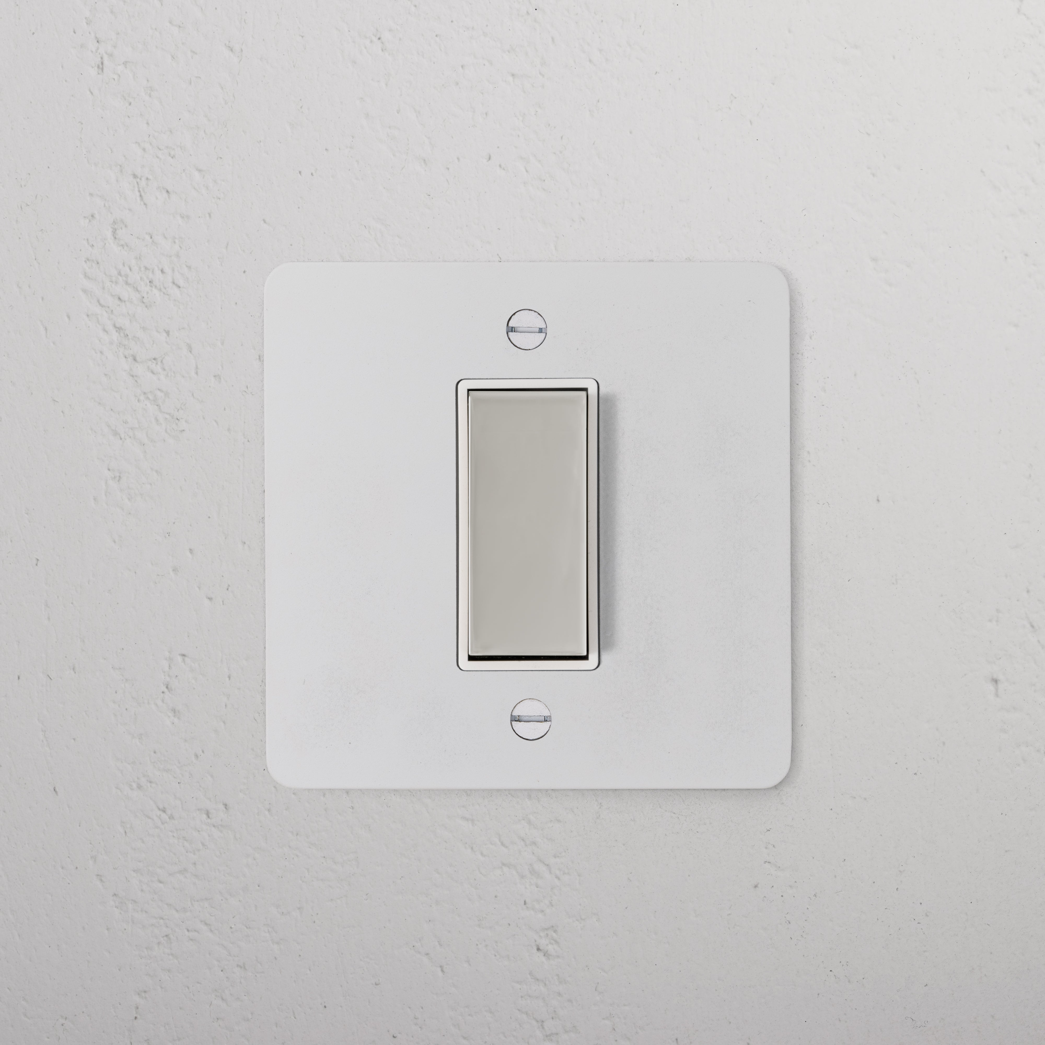 Our 1 gang centre retractive rocker switch is crafted to be as sleek and timeless as possible in any interior setting.