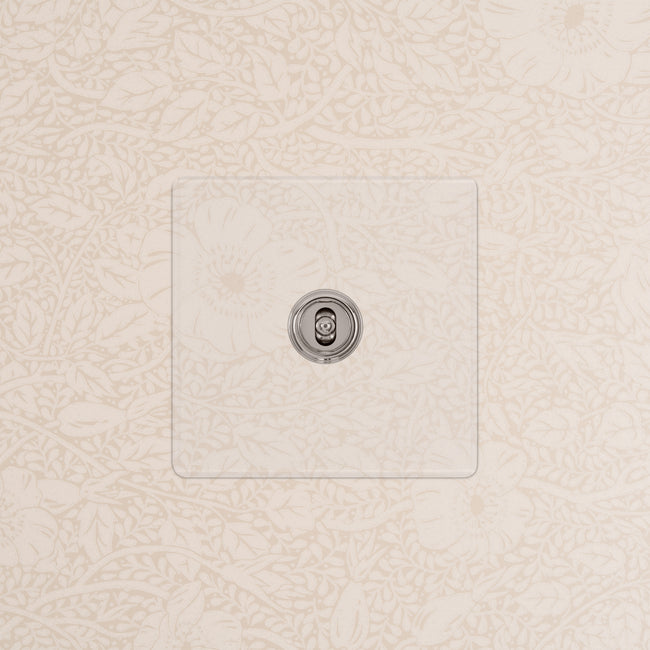 Our clear switches and sockets come with backing paper that you can either paint, or use as a wallpaper template. When you're happy with your chosen look, secure the clear front plate over the backing paper to conceal the wires. All our electrical products should be installed by a qualified electrician.