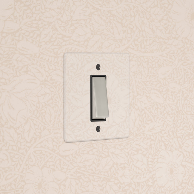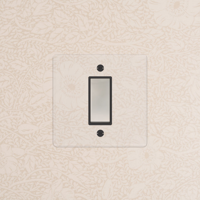 Our clear switches and sockets come with backing paper that you can either paint, or use as a wallpaper template. When you're happy with your chosen look, secure the clear front plate over the backing paper to conceal the wires. All our electrical products should be installed by a qualified electrician.