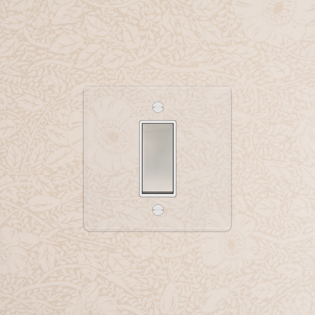 Our clear switches and sockets come with backing paper that you can either paint, or use as a wallpaper template. When you're happy with your chosen look, secure the clear front plate over the backing paper to conceal the wires. All our electrical products should be installed by a qualified electrician.