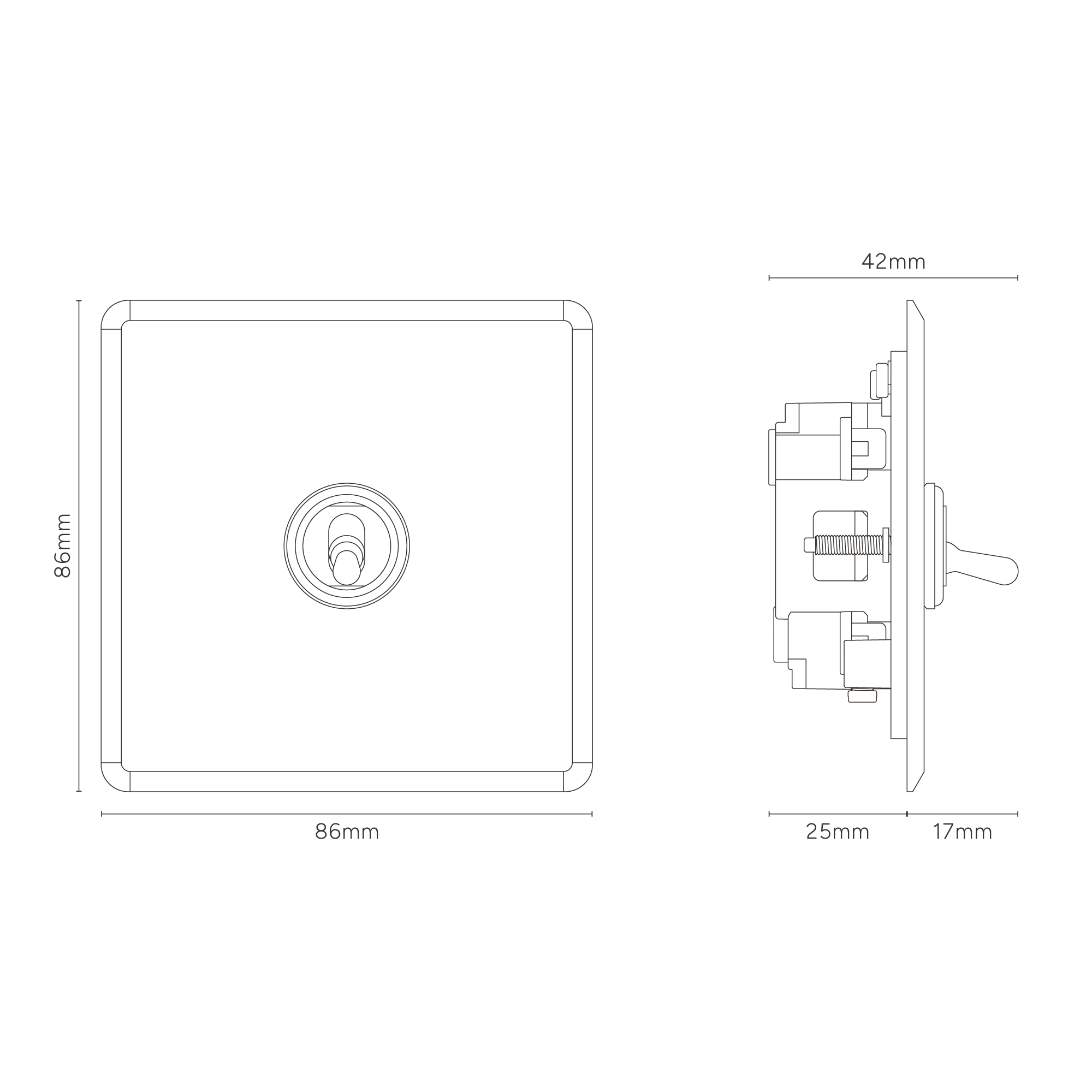 Our 1 gang double pole toggle switch is a modern take on the classic dolly design. We’ve crafted it to be as sleek and timeless as possible in any interior setting.