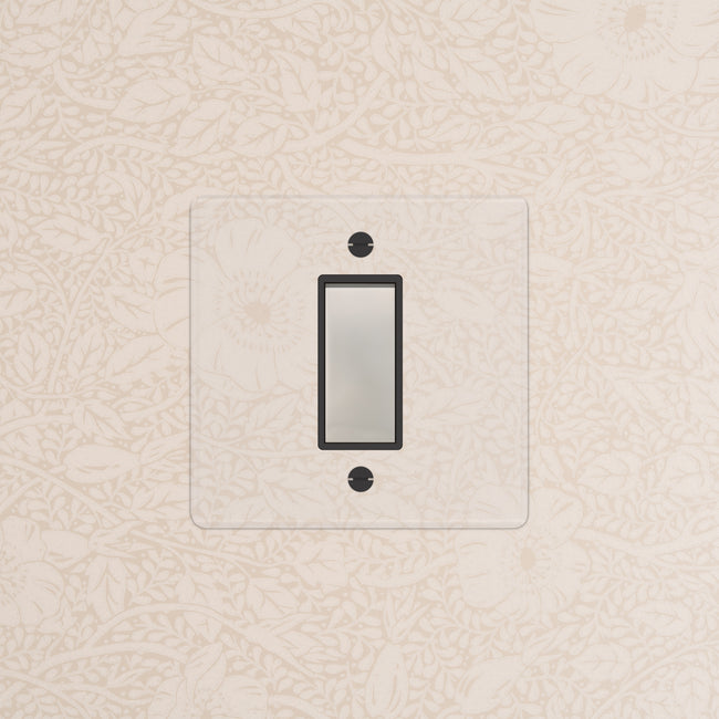 Our clear switches and sockets come with backing paper that you can either paint, or use as a wallpaper template. When you're happy with your chosen look, secure the clear front plate over the backing paper to conceal the wires. All our electrical products should be installed by a qualified electrician.