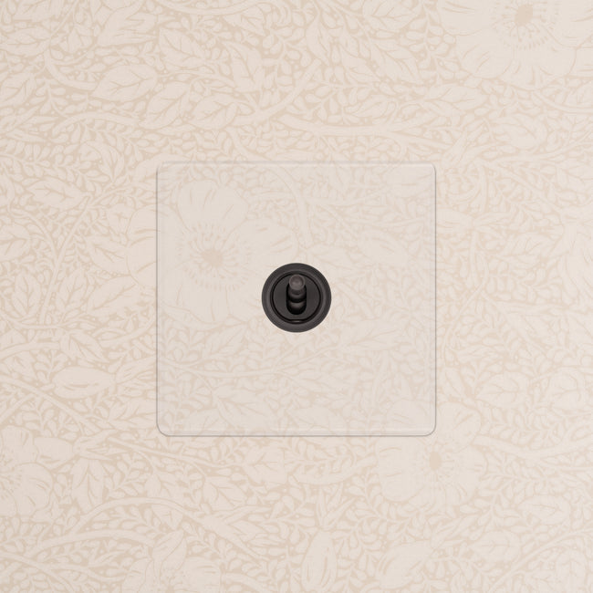 We make our clear collection from polycarbonate, which is more flexible and durable than the usual acrylic. The toggle is made from solid brass in our bronze finish.