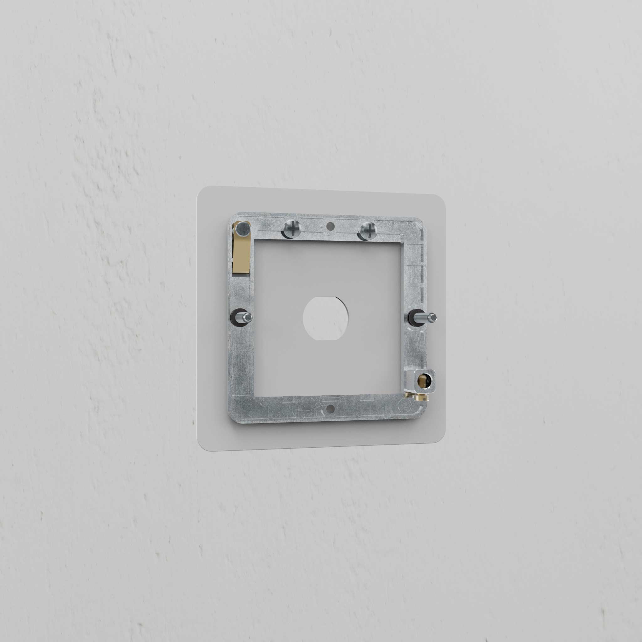 It comes with a paper template that you can either paint over or use to cut out wallpaper, which blends the plate into the wall.