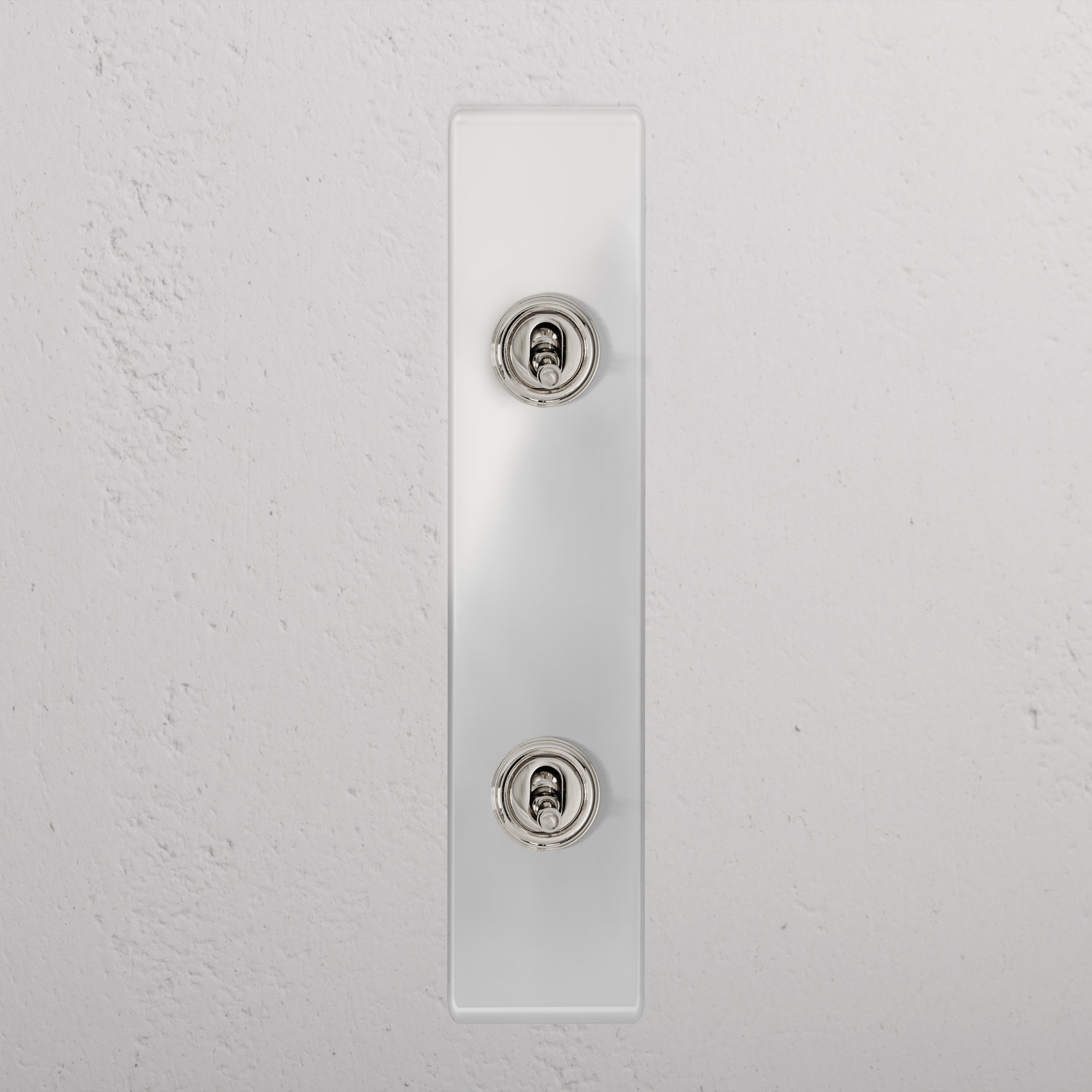 We make our clear collection from polycarbonate, which is more flexible and durable than the usual acrylic. The toggles are made from solid brass in our polished nickel finish.