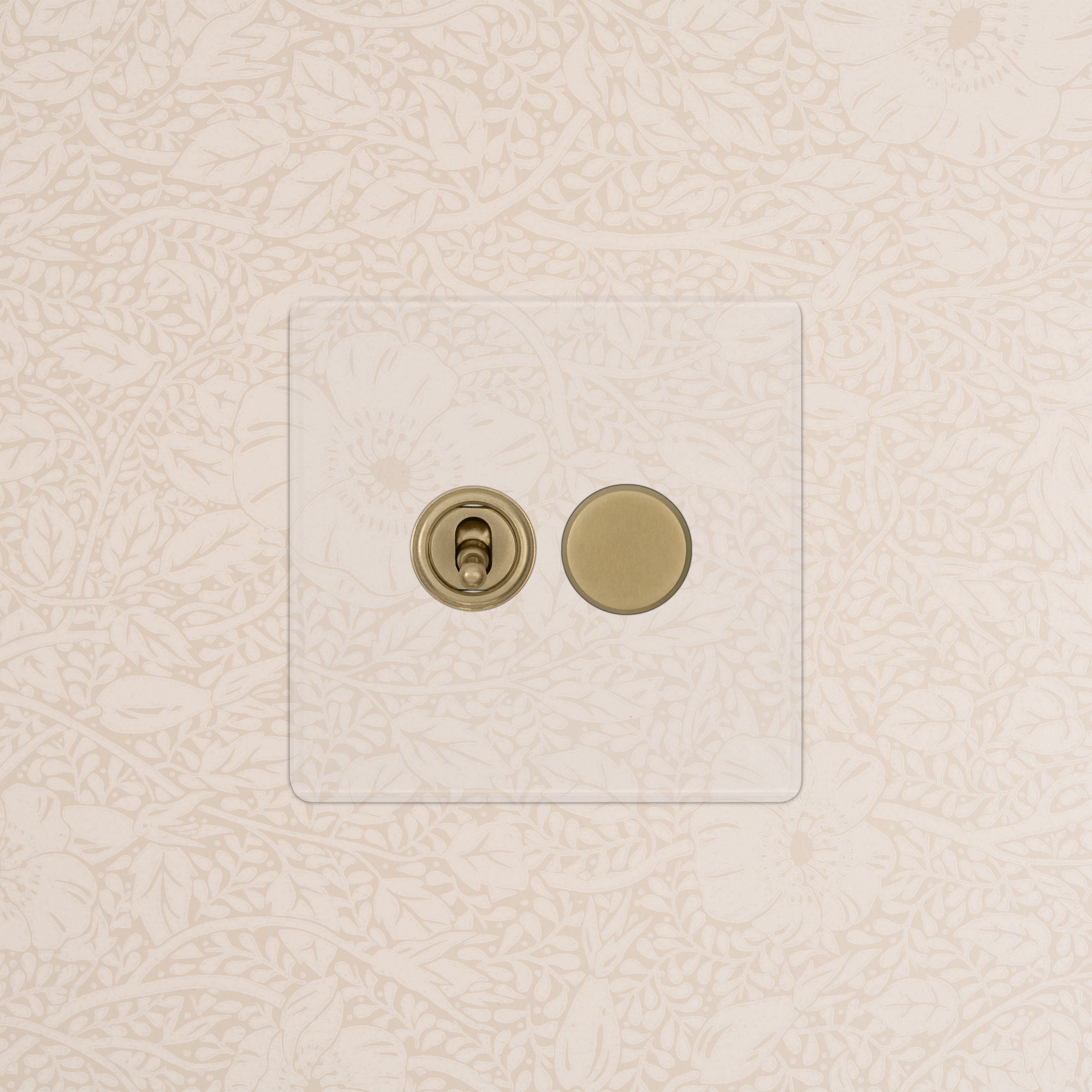 - Transparent polycarbonate plate and solid brass toggle and dimmer