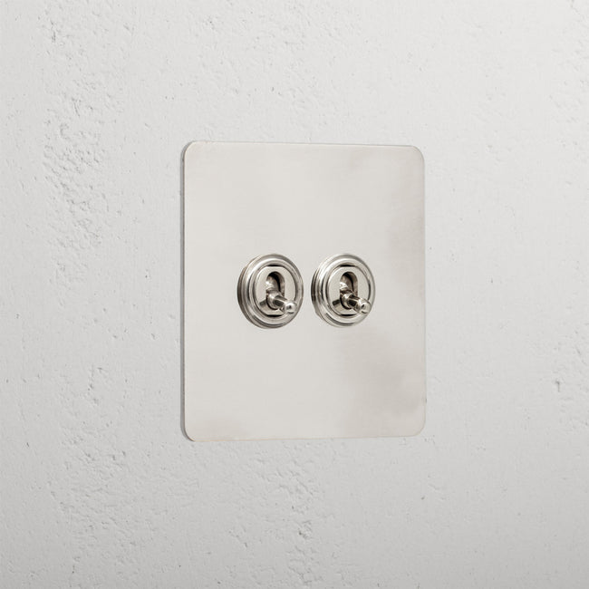 This polished nickel 2 Gang Retractive Toggle Switch has an eye-catching finish that will sit comfortably in both modern and traditional homes.