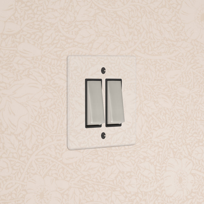 Our 2 gang two-way rocker switch is crafted to be as sleek and timeless as possible in any interior setting.