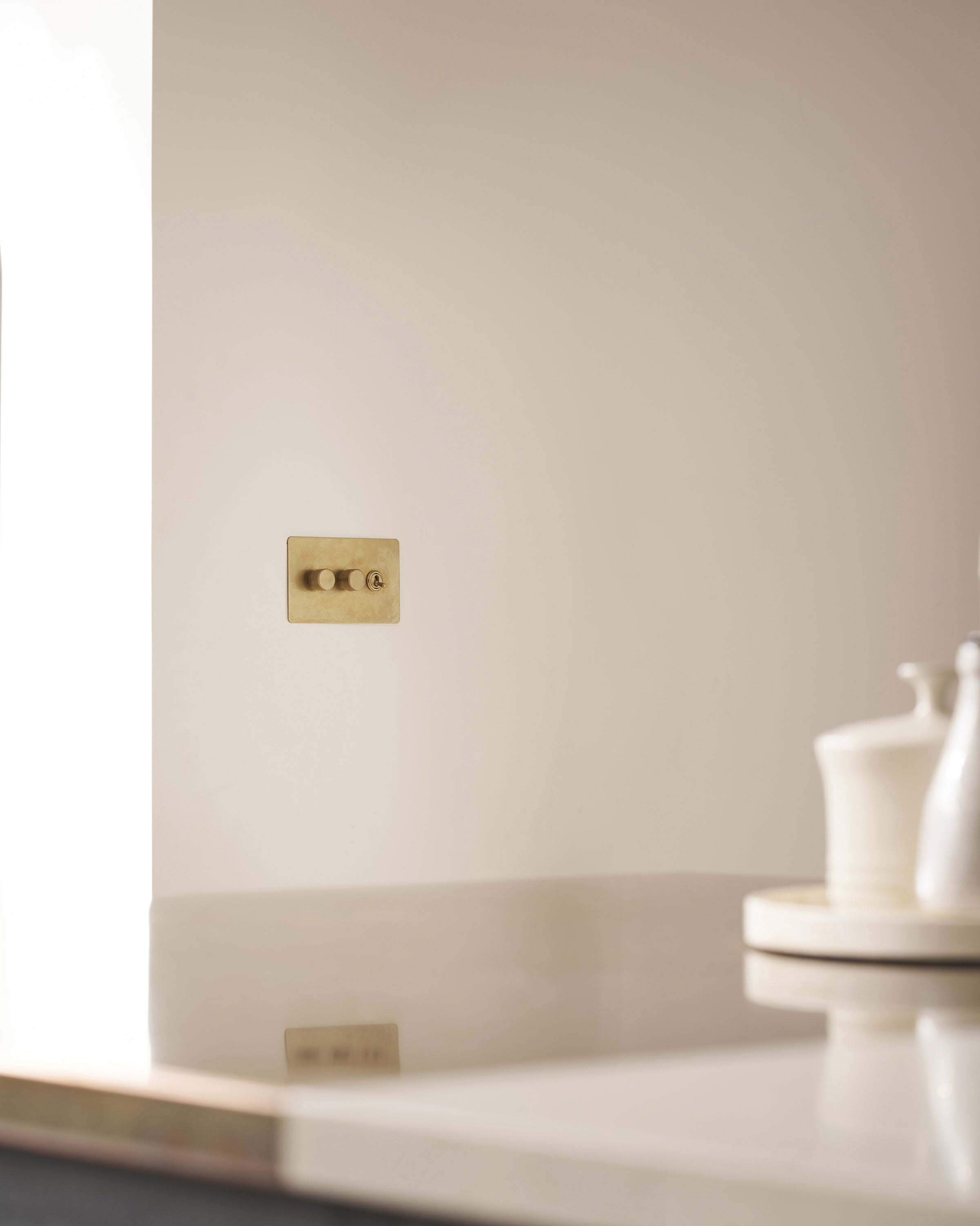 - Solid brass plate, toggles and dimmer