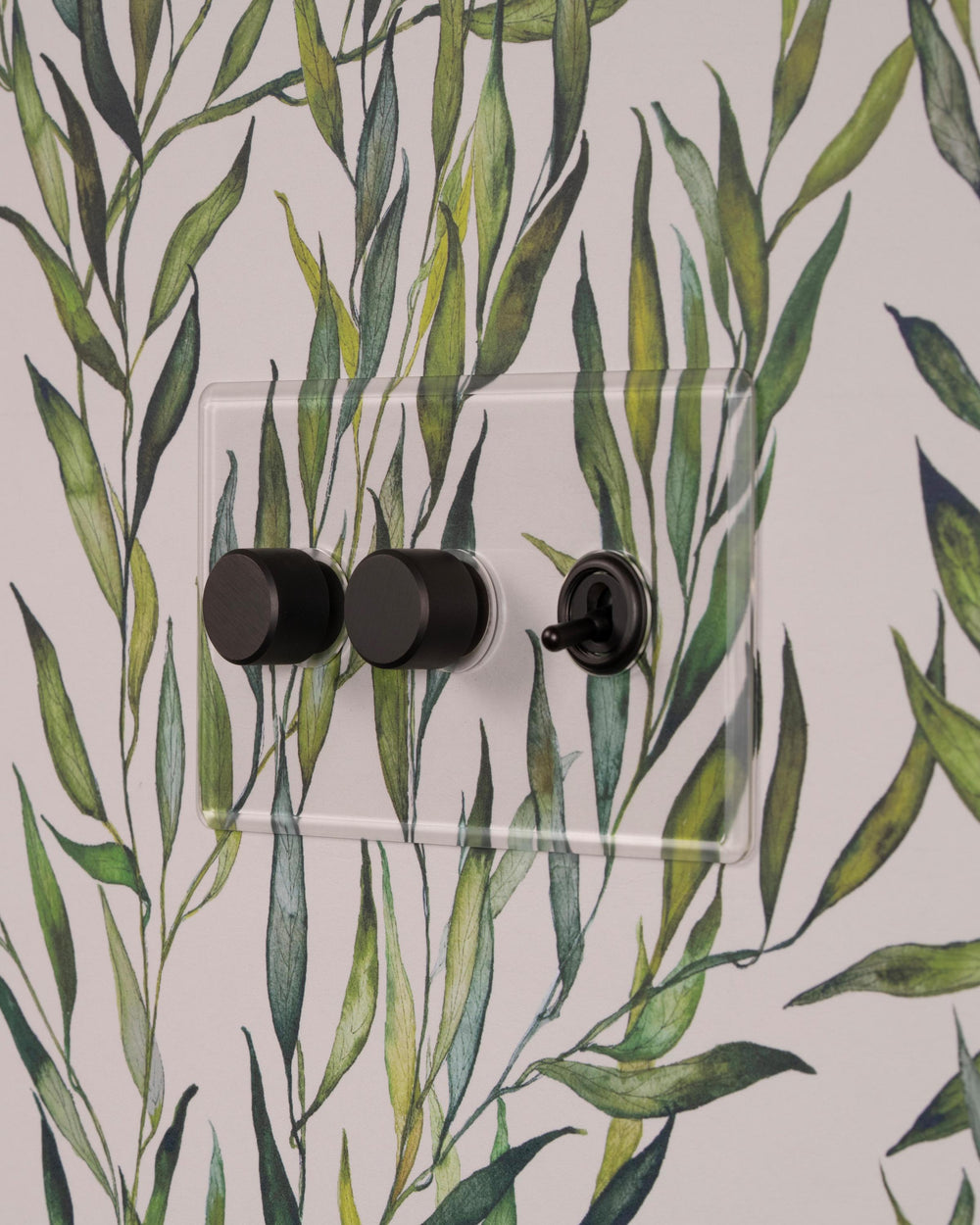 We make our clear collection from polycarbonate, which is more flexible and durable than the usual acrylic. The toggles and dimmer are made from solid brass in our bronze finish.
