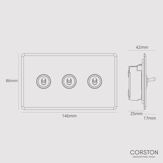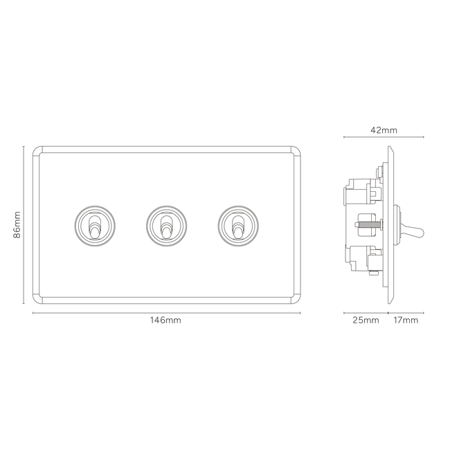 - Dimensions; h86mm x w146mm x d42mm. Toggle height is 17mm