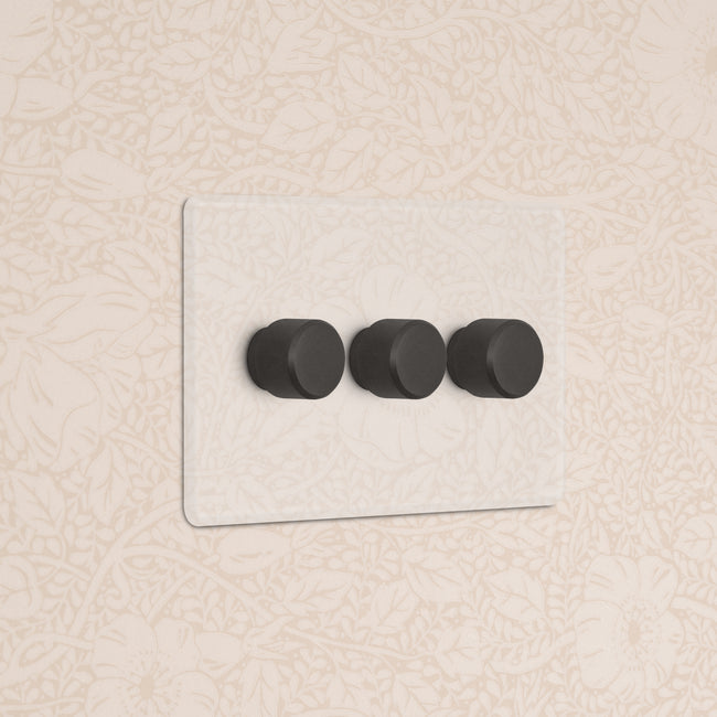 Our 3 gang two-way rotary dimmer switch is crafted to be as sleek and timeless as possible in any interior setting.