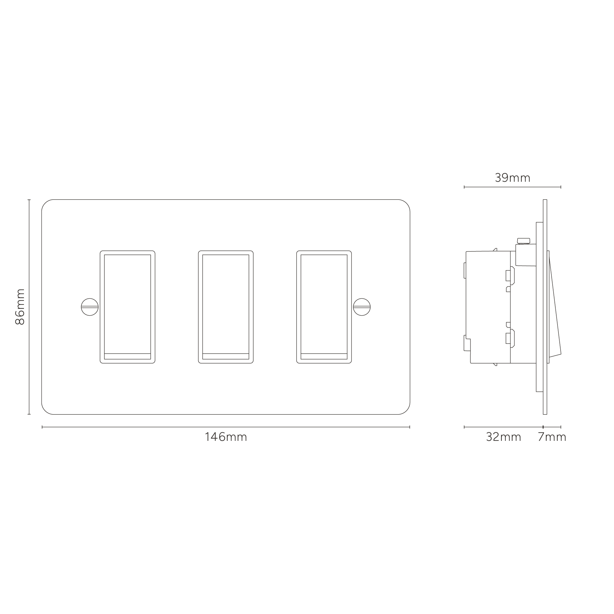 Our 3 gang two-way rocker switch is crafted to be as sleek and timeless as possible in any interior setting.