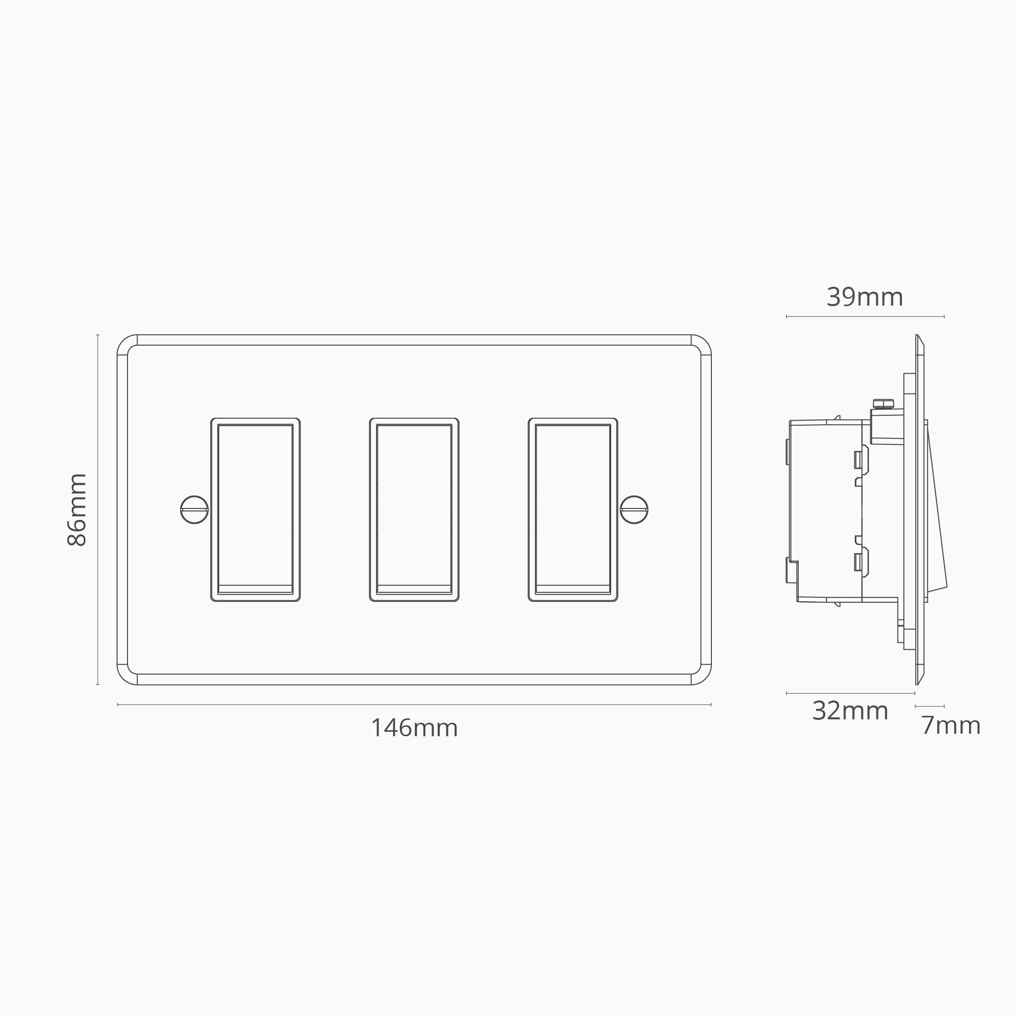Our 3 gang two-way rocker switch is crafted to be as sleek and timeless as possible in any interior setting.