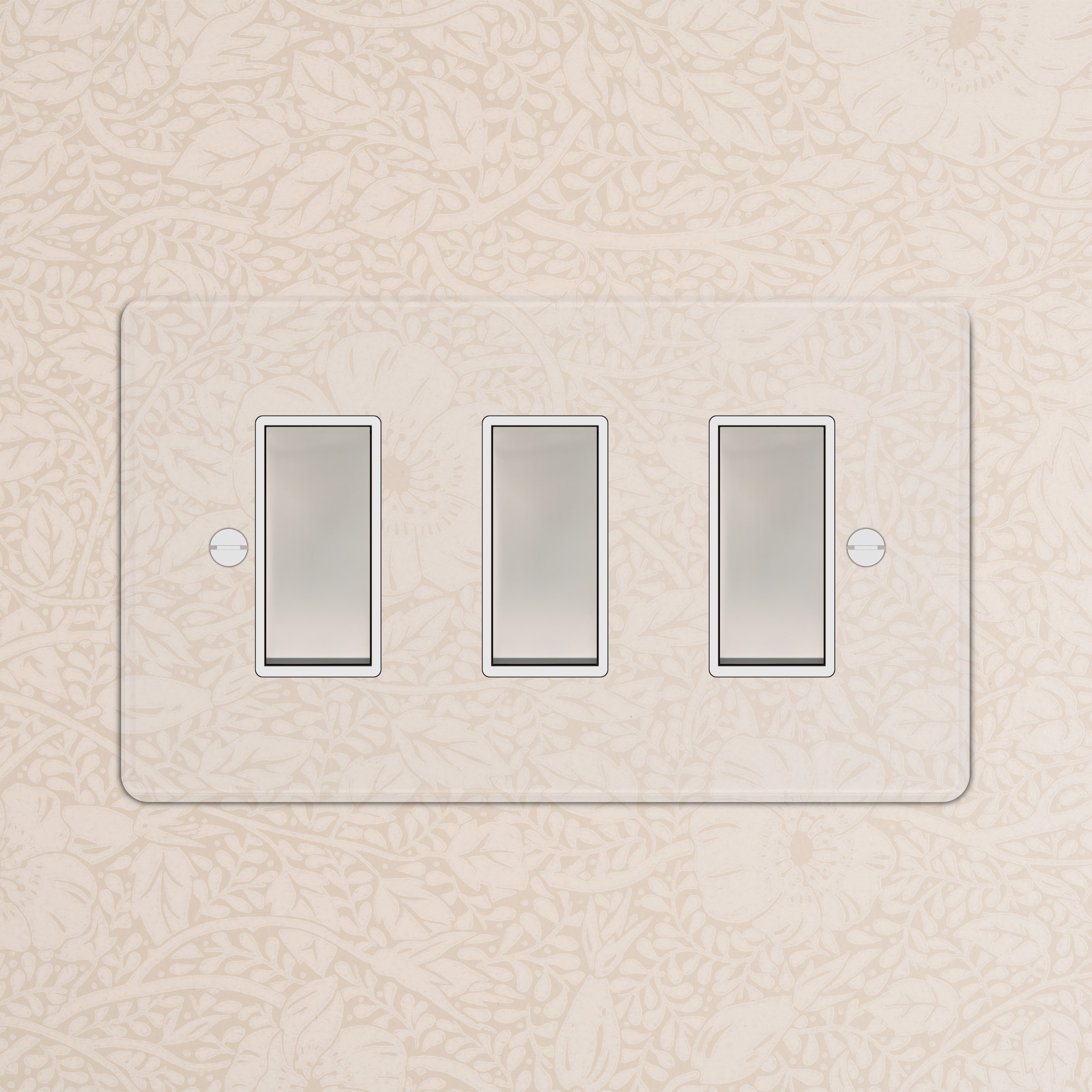 Our 3 gang two-way rocker switch is crafted to be as sleek and timeless as possible in any interior setting.