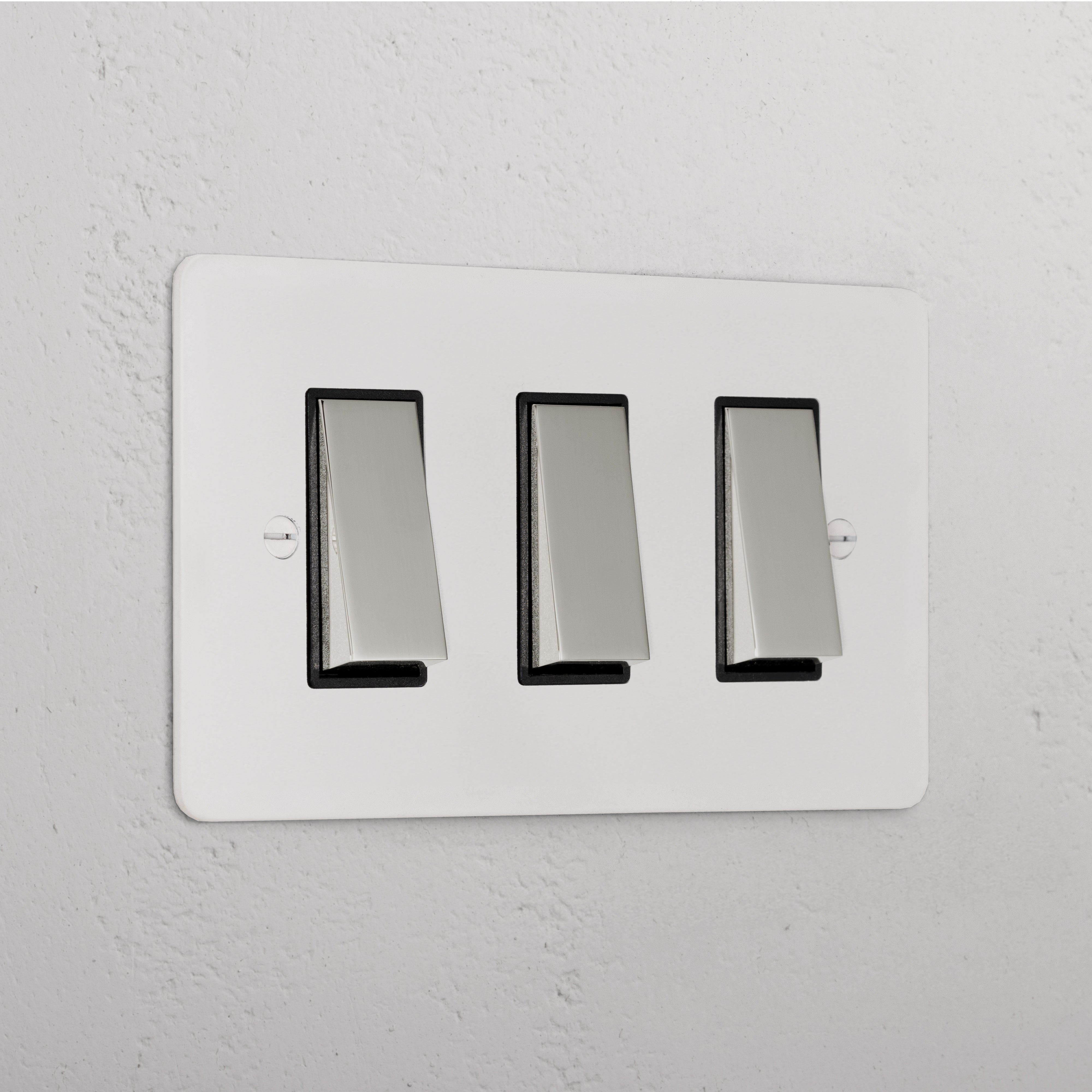 Our 3 gang two-way rocker switch is crafted to be as sleek and timeless as possible in any interior setting.