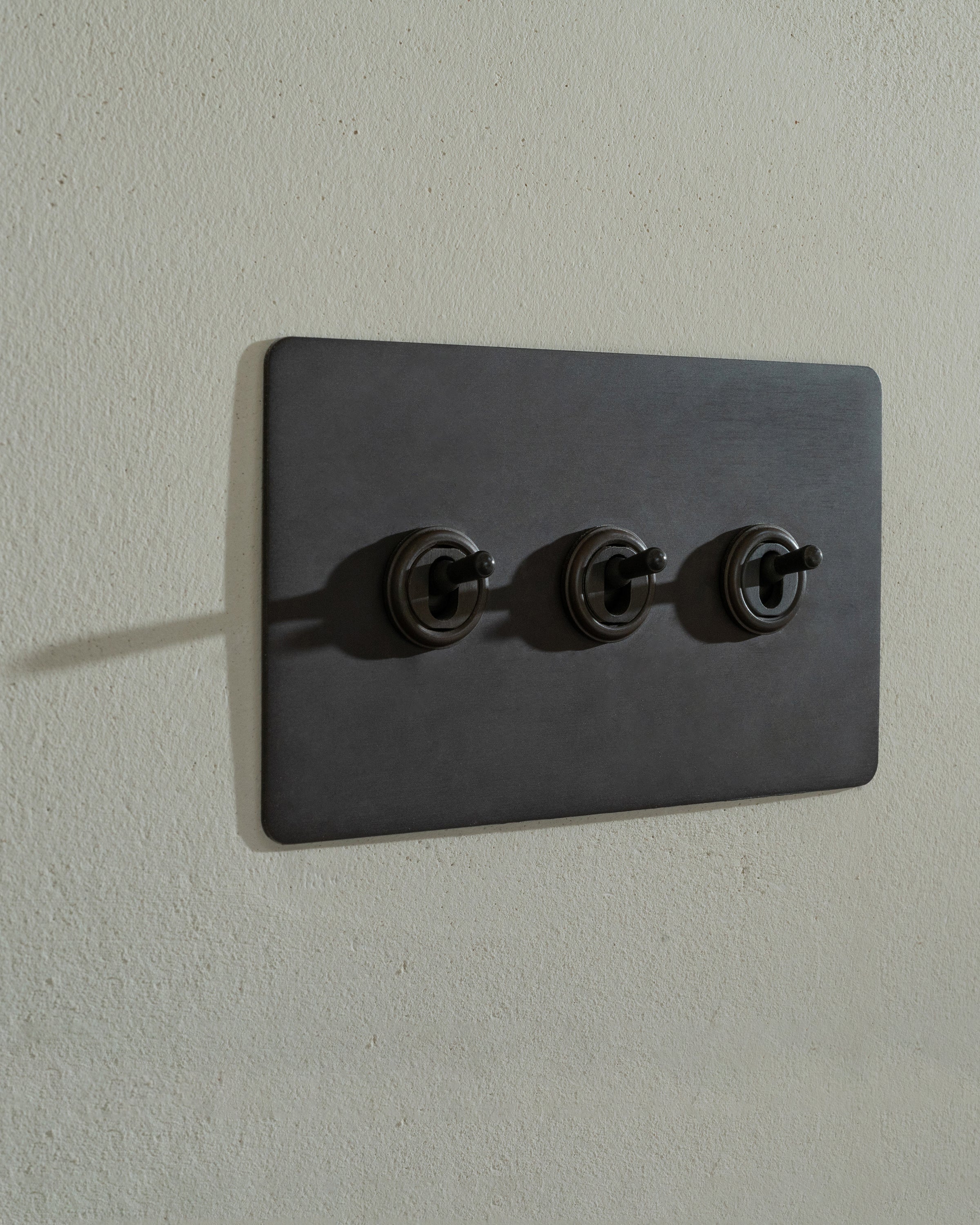 Our 3 gang two-way toggle switch is a modern take on the classic dolly design. We’ve crafted it to be as sleek and timeless as possible in any interior setting.