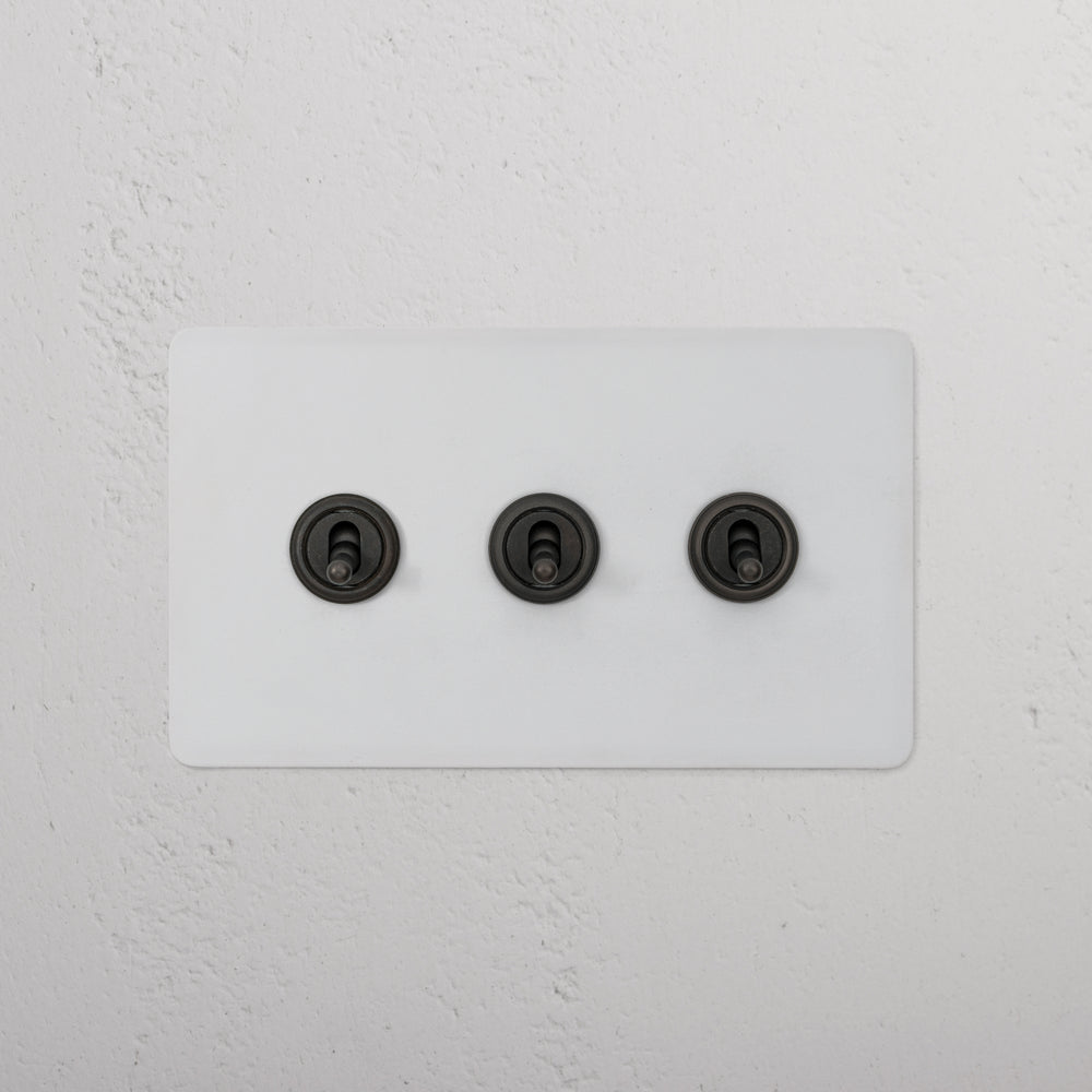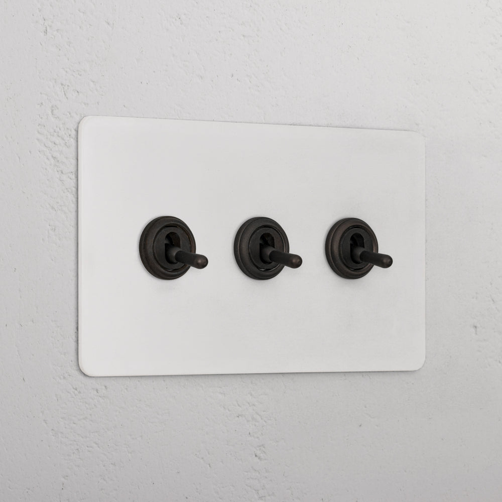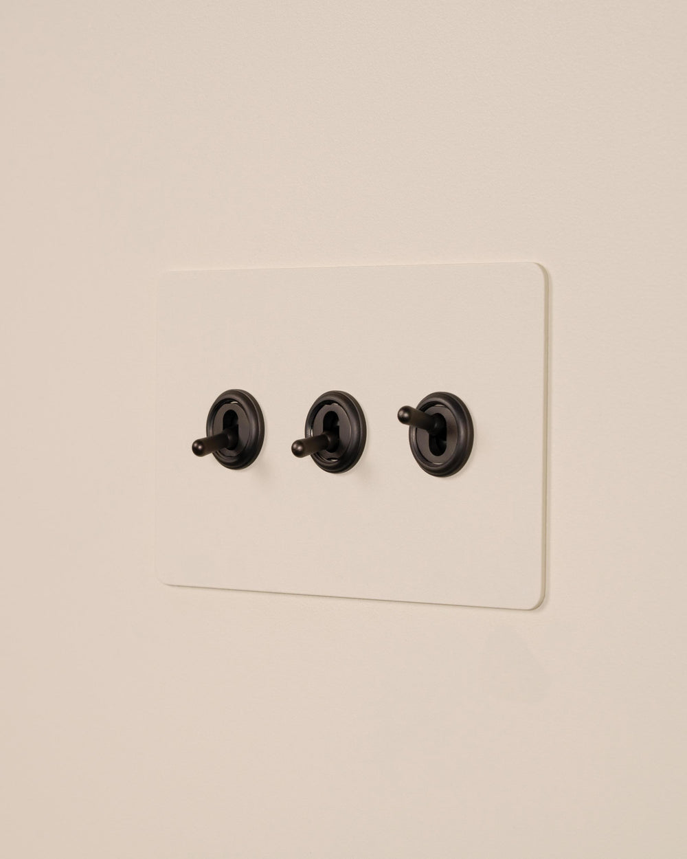 Our 3 gang two-way toggle switch is a modern take on the classic dolly design. We’ve crafted it to be as sleek and timeless as possible in any interior setting.