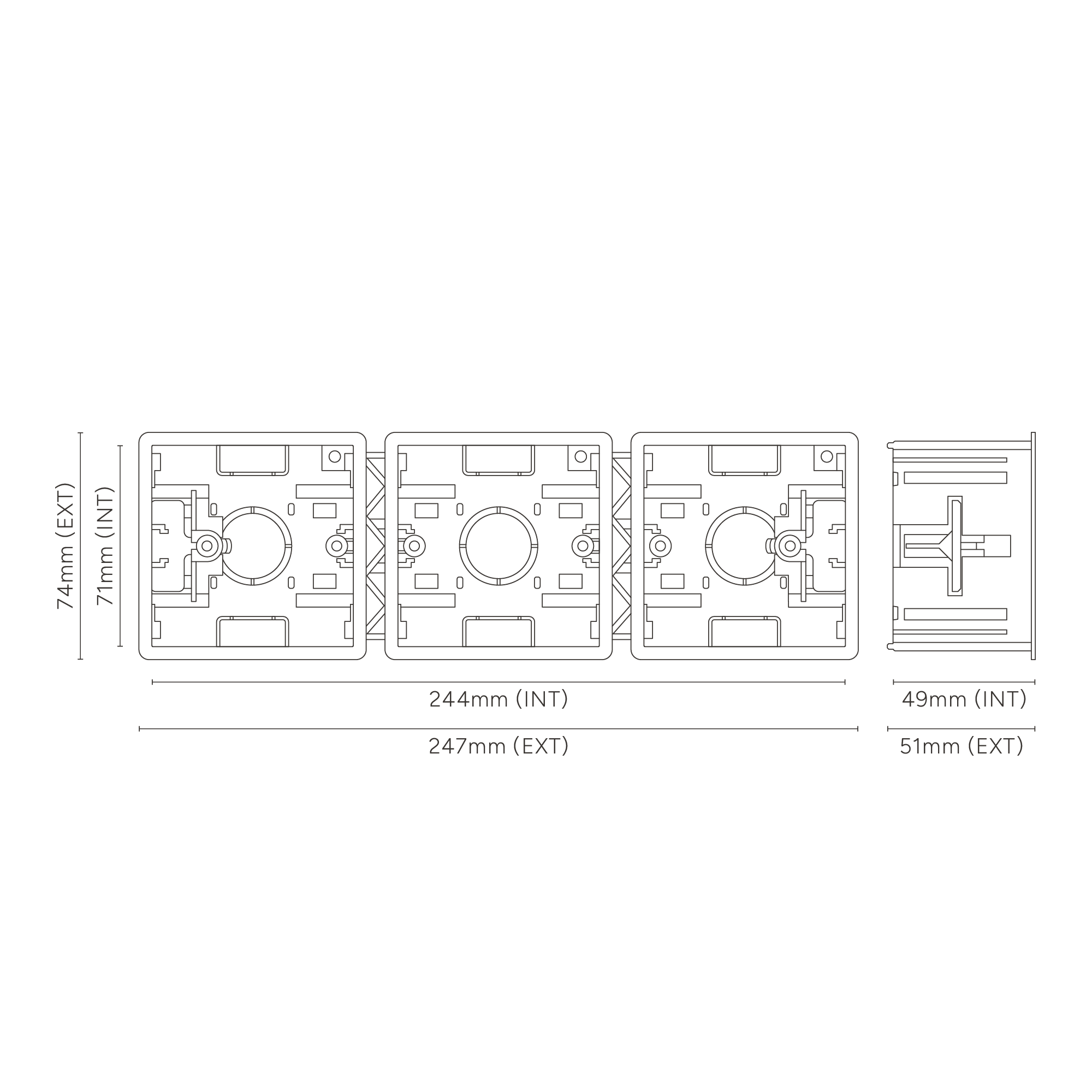 This single 3x back box is made from fully recycled and recyclable post-consumer plastic. It’s for plasterboard cavity walls, so it has tabs and a lip that grip the plasterboard securely.