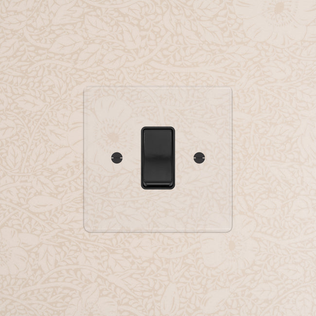 Our clear switches and sockets come with backing paper that you can either paint, or use as a wallpaper template. When you're happy with your chosen look, secure the clear front plate over the backing paper to conceal the wires. All our electrical products should be installed by a qualified electrician.