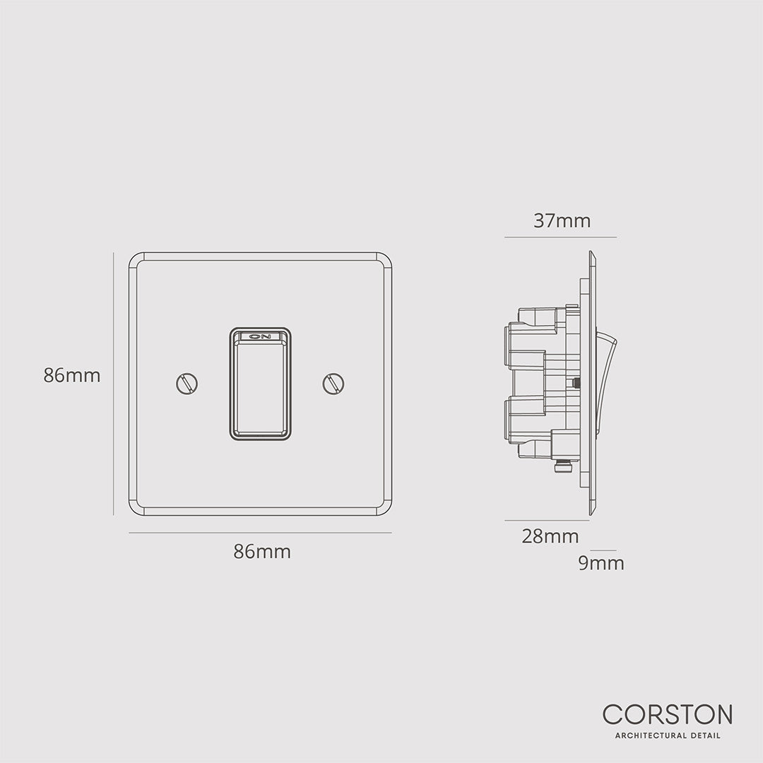 All Corston switches and sockets require a back box with a minimum depth of 35-47mm. It's the only way you'll achieve a flush finish. Our 6G and 8G switches must be used with a Corston double metal back box. because of the bespoke size.