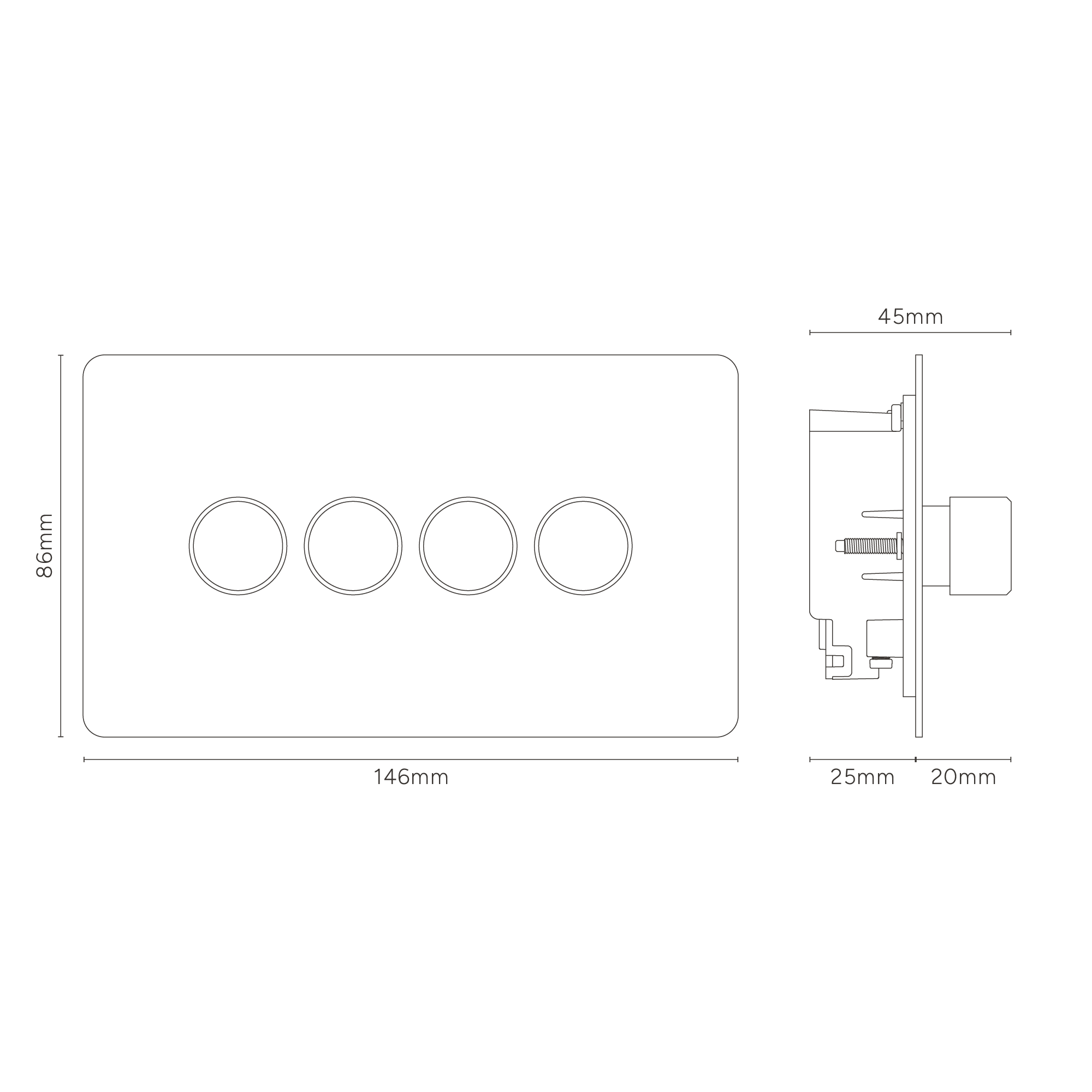 Our 4 gang two-way rotary dimmer switch is crafted to be as sleek and timeless as possible in any interior setting.