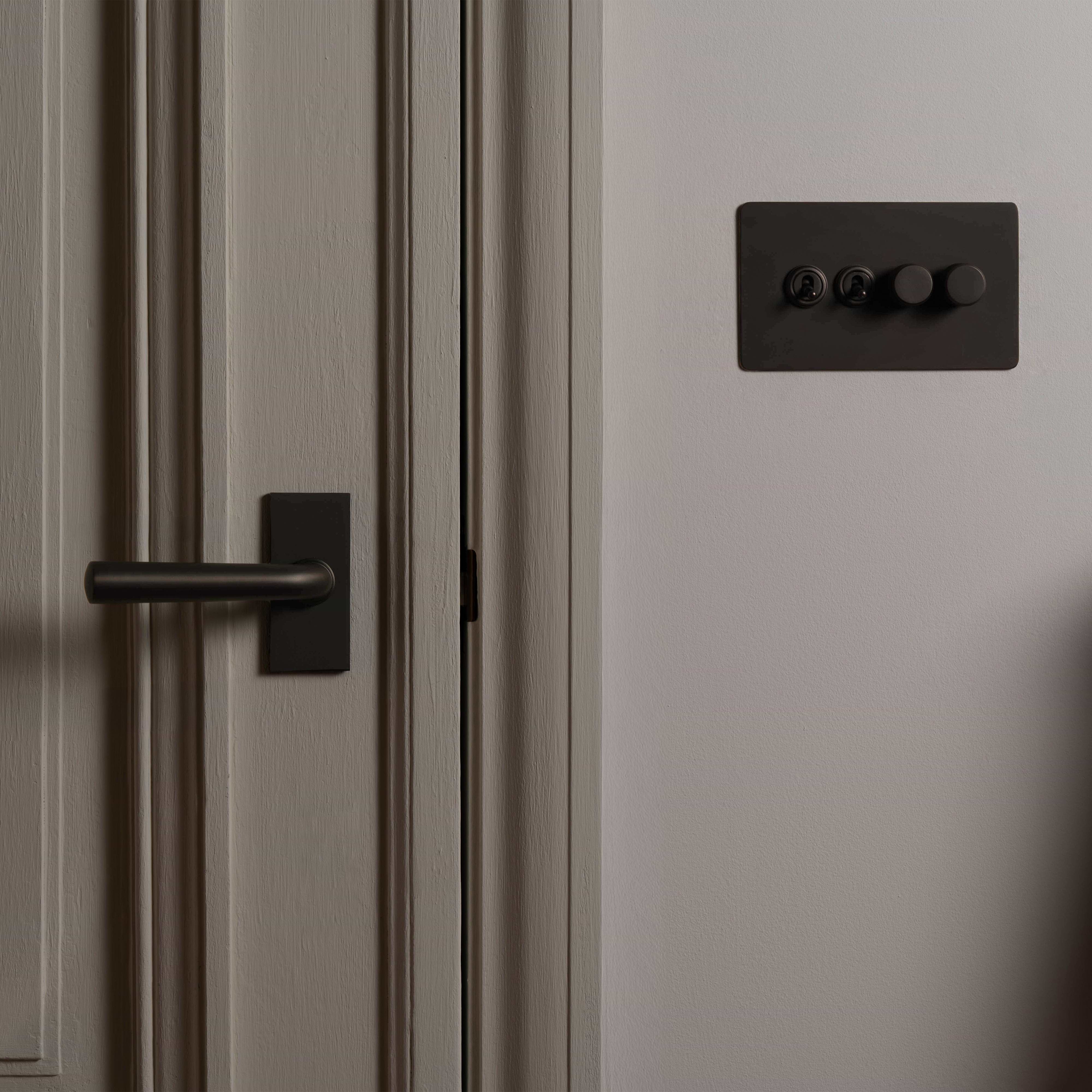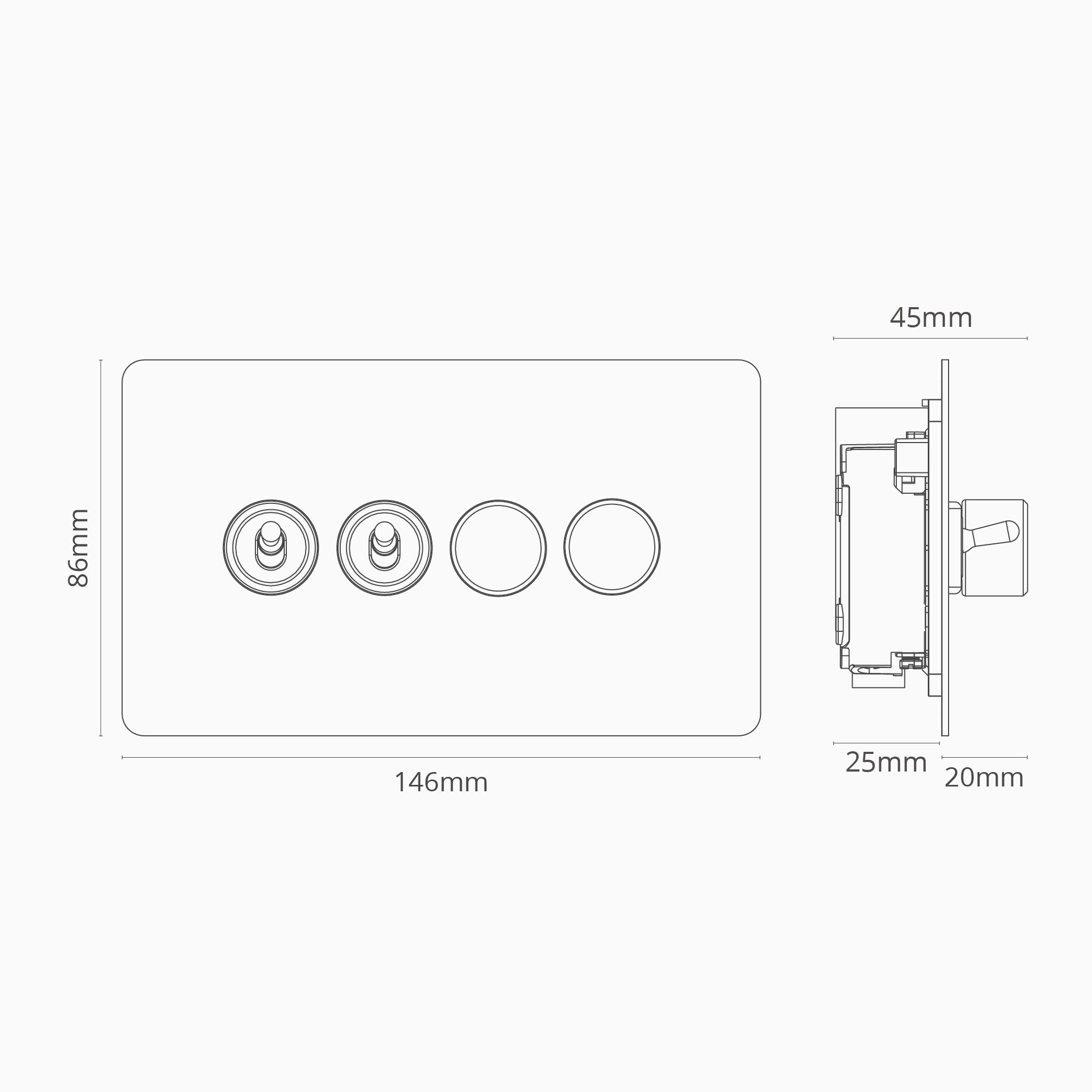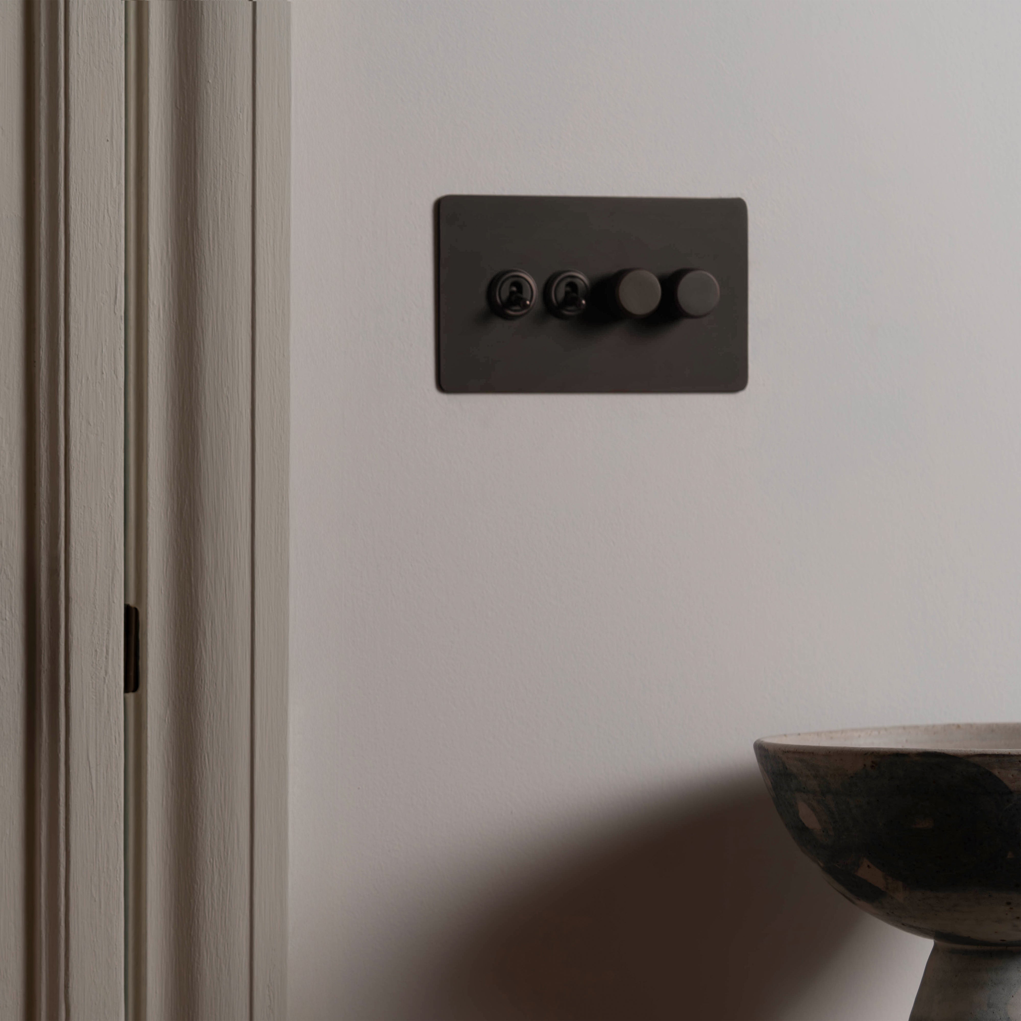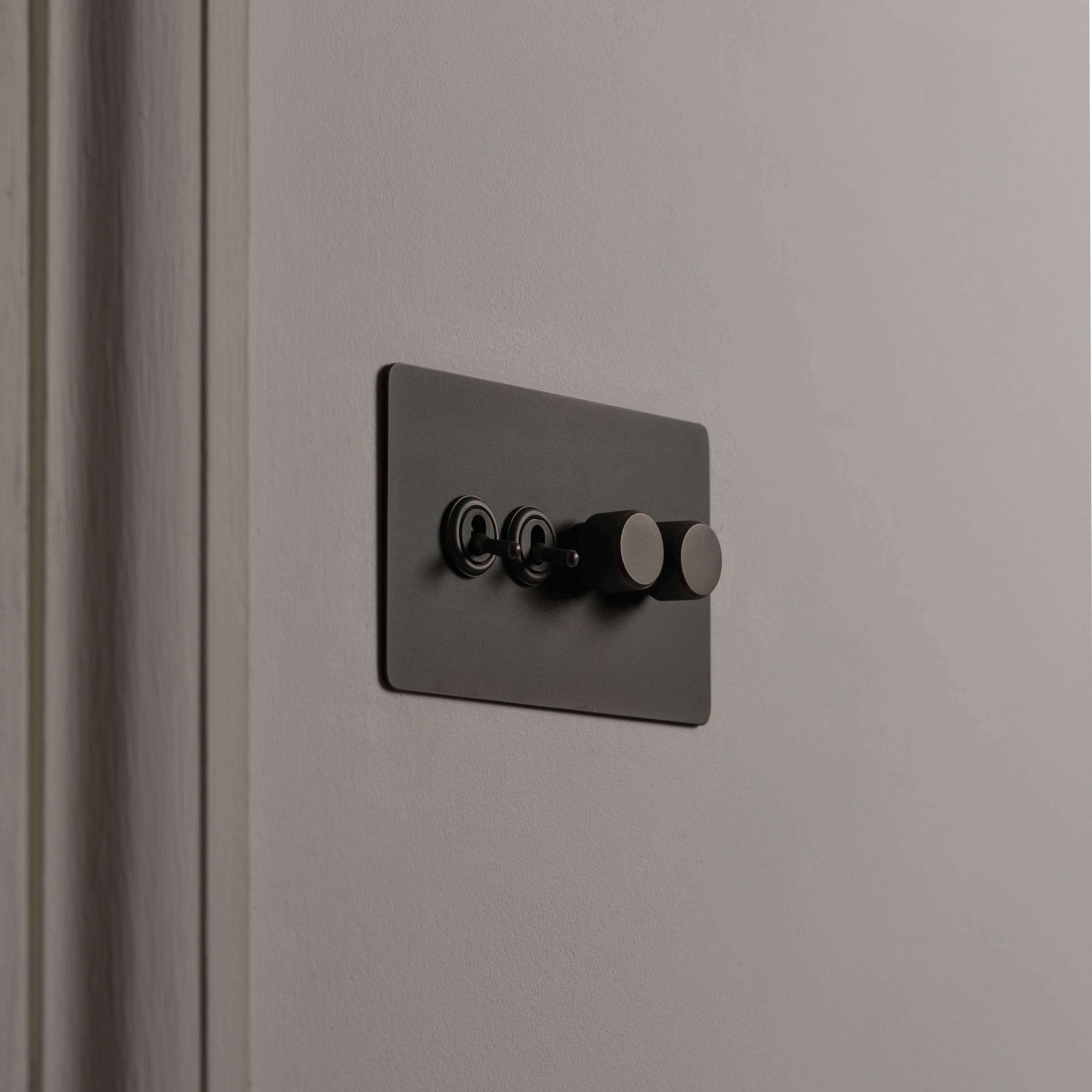 Use two standard toggle switches and two dimmer knobs on one plate with our mixed switch design.