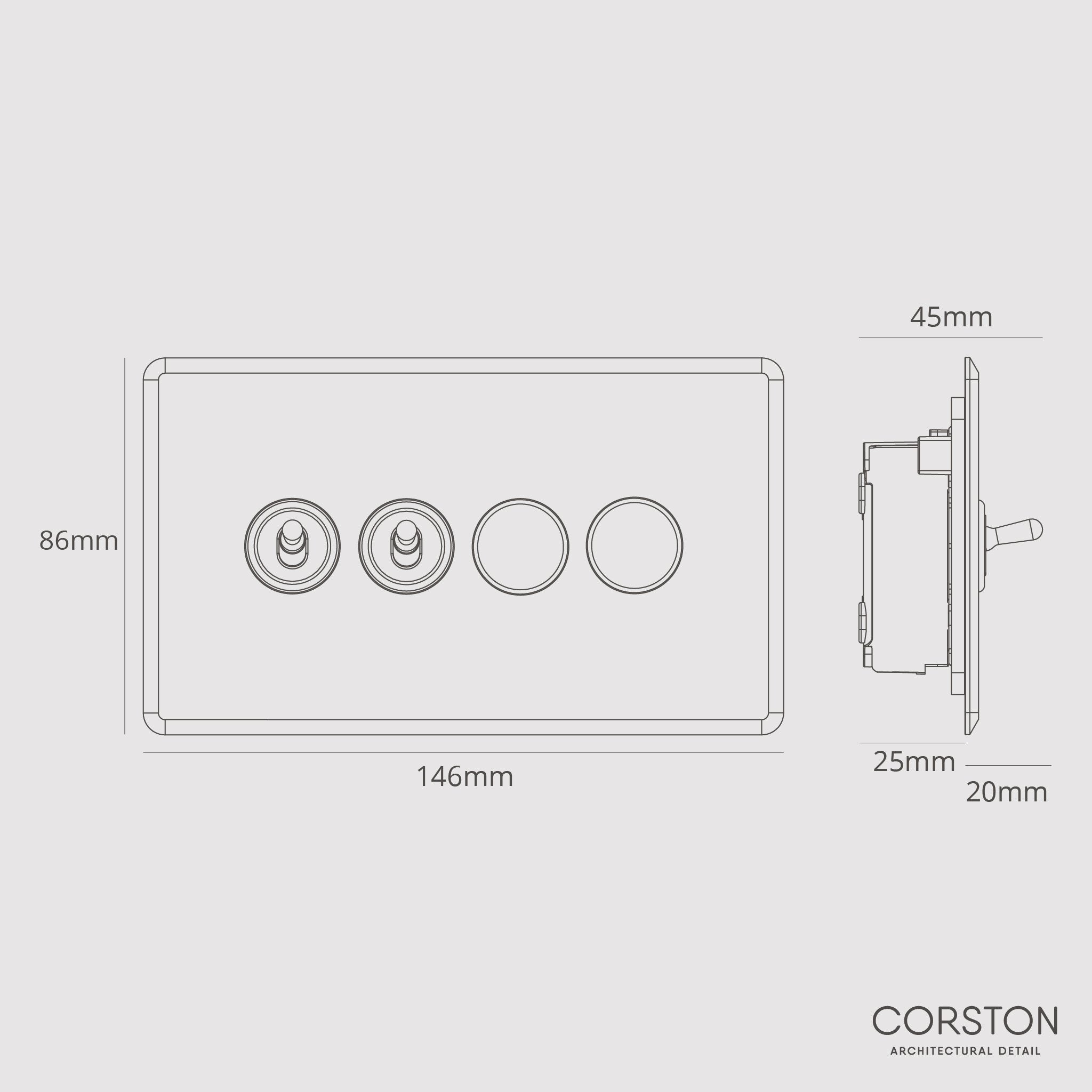 All Corston switches and sockets require a back box with a minimum depth of 35-47mm. It's the only way you'll achieve a flush finish. Our 6G and 8G switches must be used with a Corston double metal back box. because of the bespoke size.