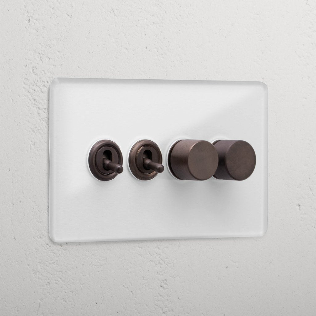 Use two standard toggle switches and two dimmer knobs on one plate with our mixed switch design.