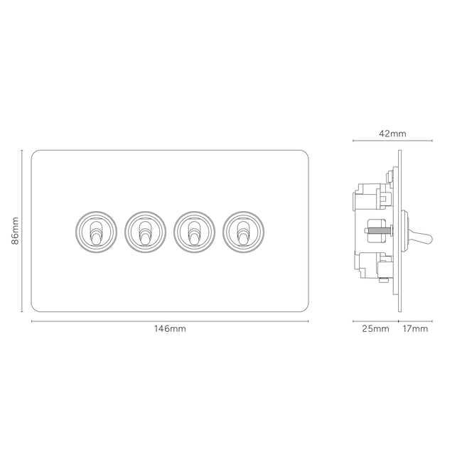 All our switches and sockets must be fitted with back boxes that are at least 35mm in depth. Our rocker switches and our 6G and 8G light switches must be fitted with our bespoke 47mm back boxes to ensure the flush fit of our plates.