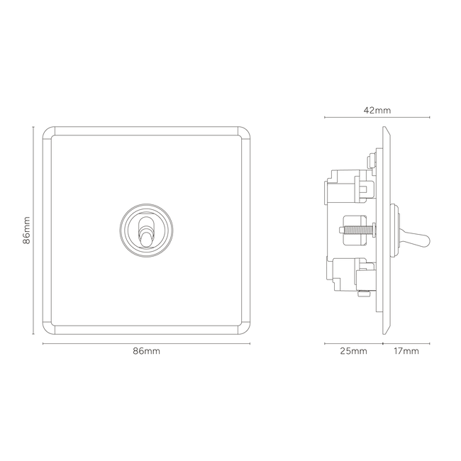 - Dimensions; h86mm x w146mm x d42mm. Toggle height is 17mm