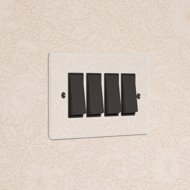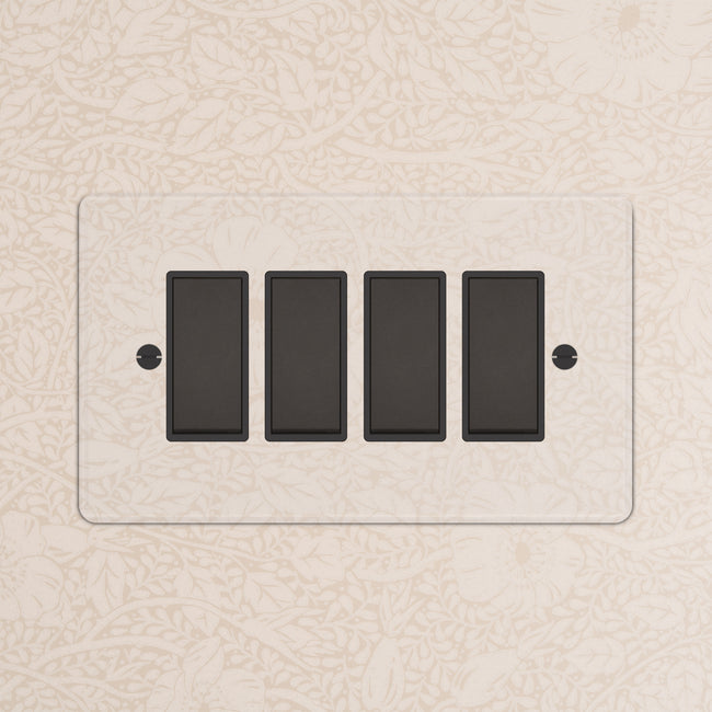 Our 4 gang two-way rocker switch is crafted to be as sleek and timeless as possible in any interior setting.