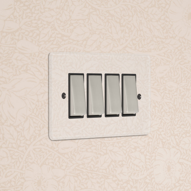 Our 4 gang two-way rocker switch is crafted to be as sleek and timeless as possible in any interior setting.