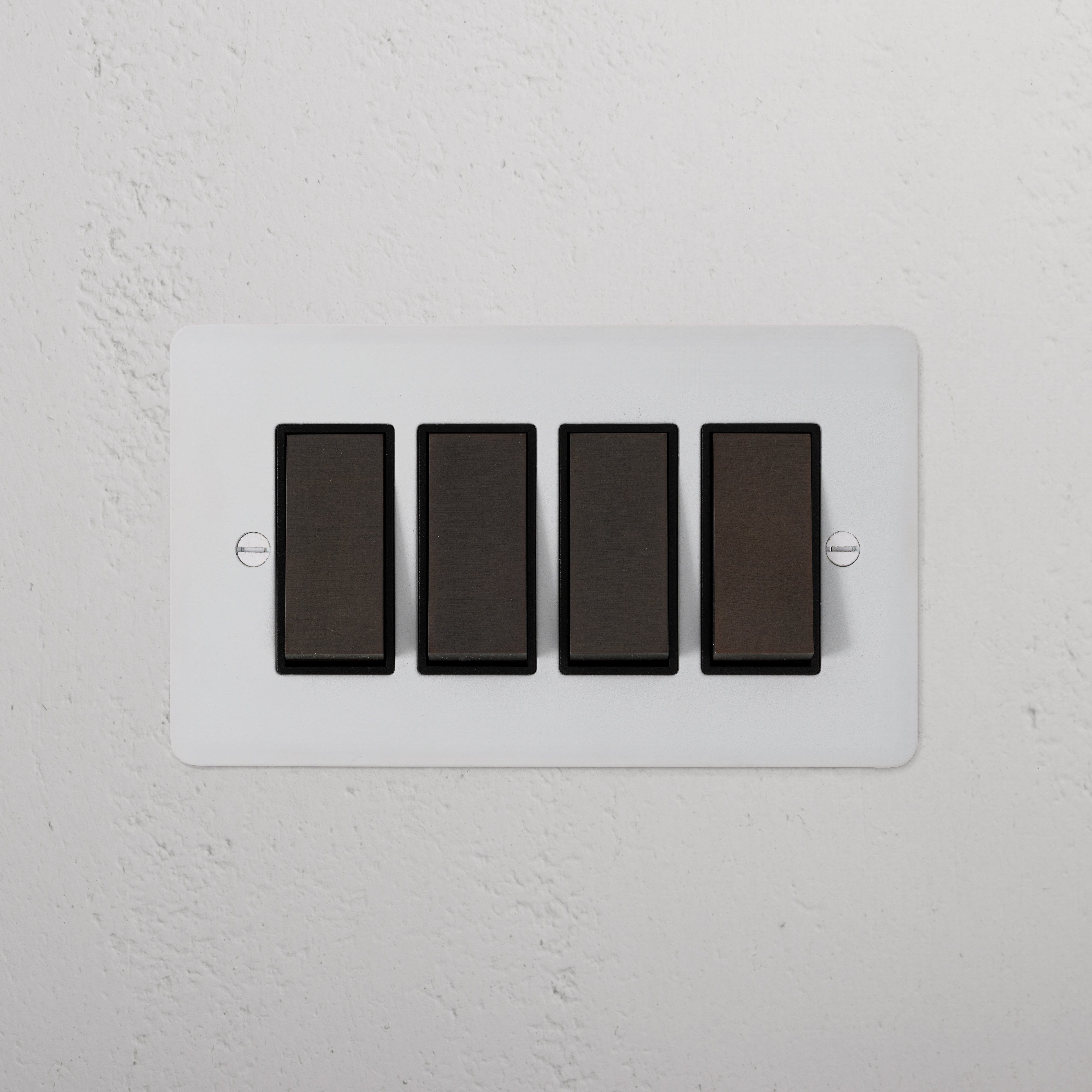 The subtle solid brass switch detailing is finished in Bronze. Bronze is our boldest finish, but it isn’t shiny or bright, so it has a subtle side to it too. It’s a deep matt brown colour that’s almost black in some lights.