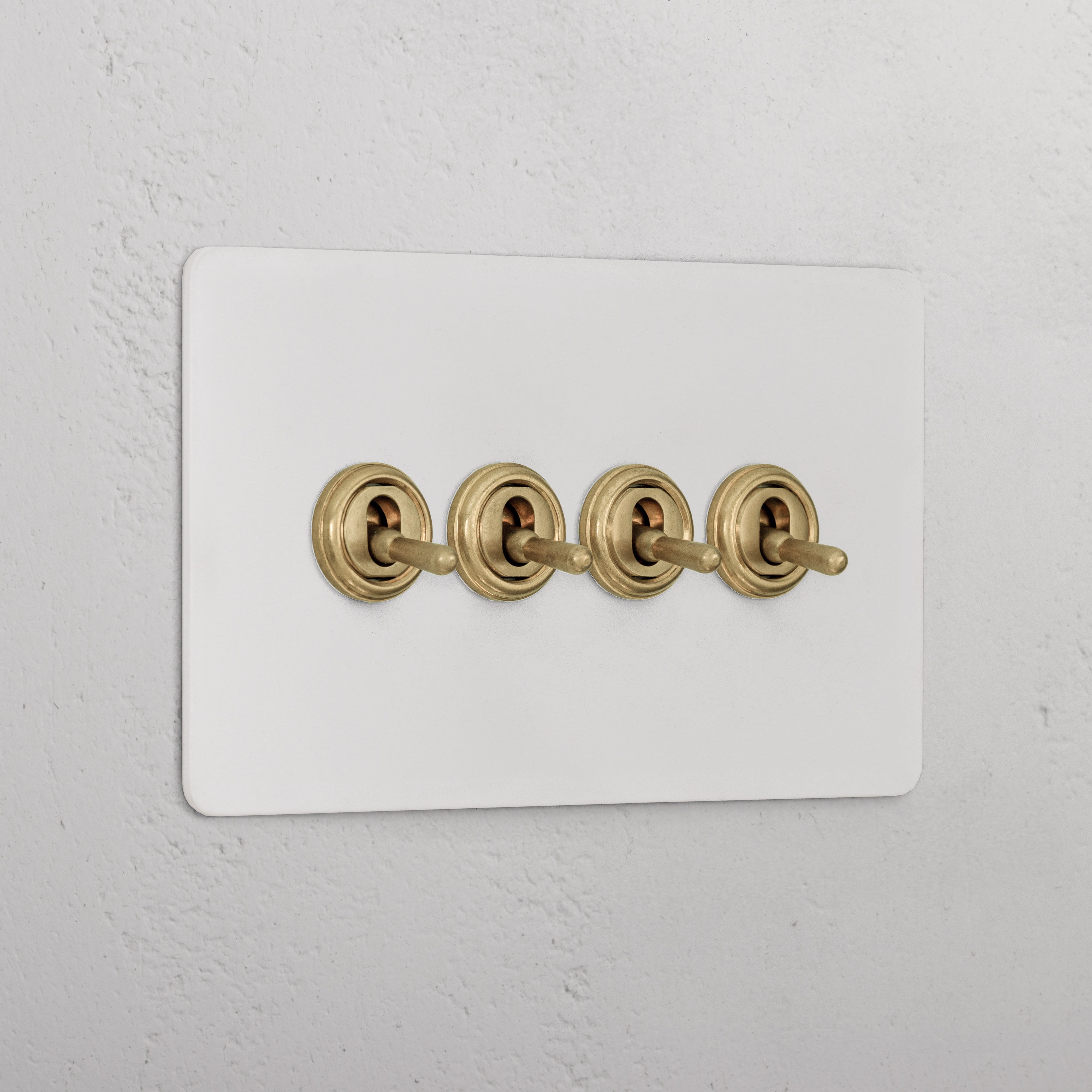 Our 4 gang two-way toggle switch is a modern take on the classic dolly design. We’ve crafted it to be as sleek and timeless as possible in any interior setting.