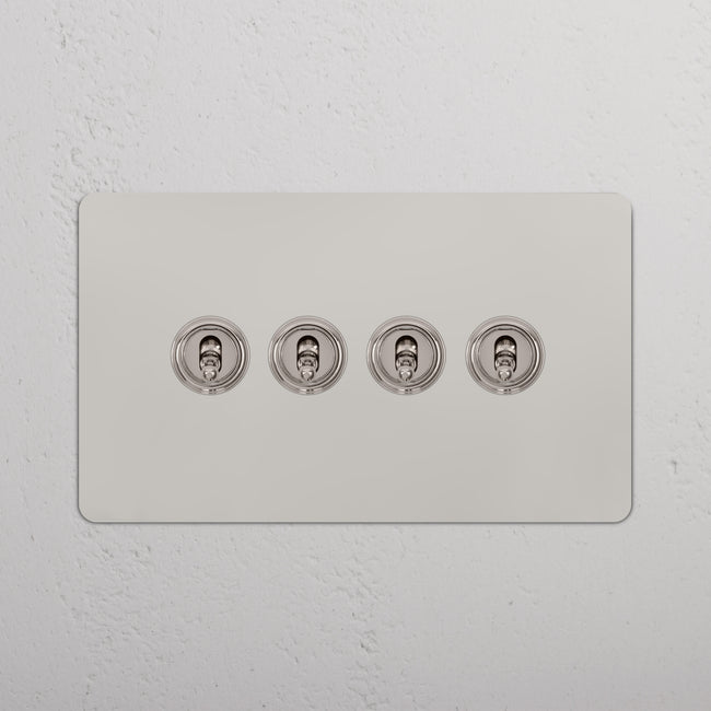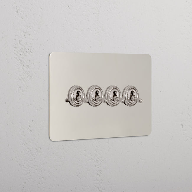 Our 4 gang two-way toggle switch is a modern take on the classic dolly design. We’ve crafted it to be as sleek and timeless as possible in any interior setting.